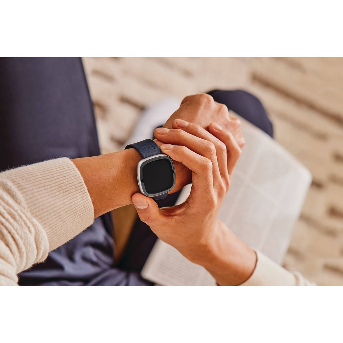 The sophistication of leather with the sustainability of biobased products--vegan leather bands in peaceful neutrals are an innovative take on a premium style. Made with Ultrafabrics Volar Bio™. Official Fitbit accessory designed and tested for comfort and durability. Works with Fitbit Sense 2, Fitbit Sense, Fitbit Versa 4, and Fitbit Versa 3, watch not included.