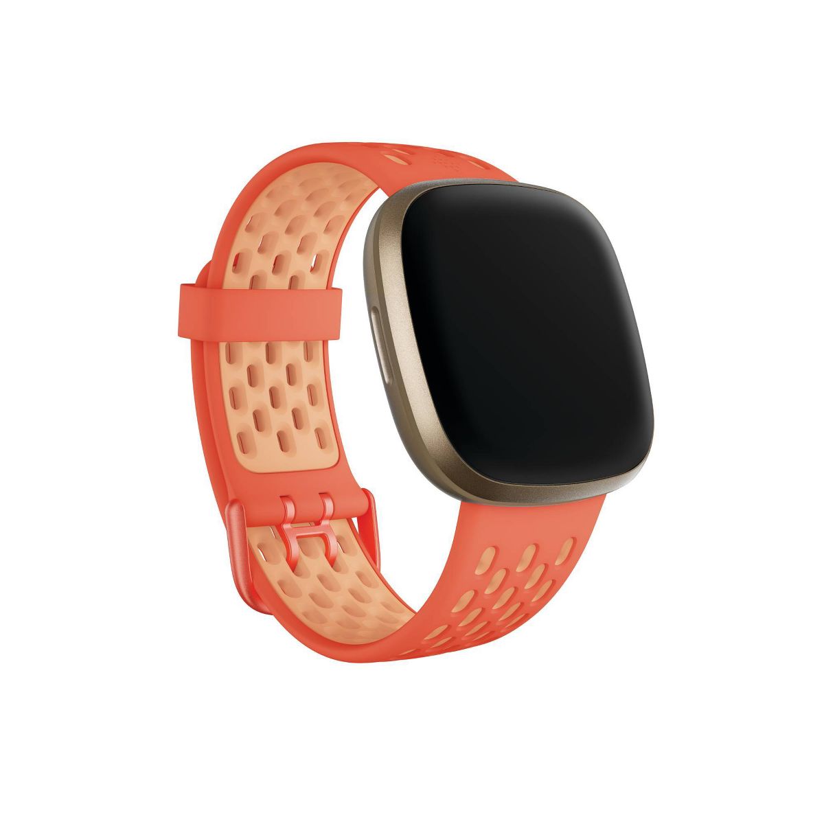 Go from work to workouts and everywhere in between in these soft, breathable sport accessory bands with unique two-tone color combinations inspired by nature. The large perforations enable extra breathability and comfort, and the aluminum double buckle keeps the band secure on your wrist. Designed to work with Fitbit Sense and Versa 3 smartwatches, sold separately.