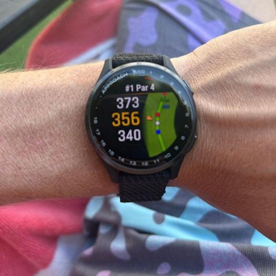 Get all the essential features you need tolower your score with the Garmin Approach S44 GPS Golf Smartwatch with SilverAluminum Bezel and Black Silicone Band. The stunning 1.2-inch AMOLEDtouchscreen display makes it easy to see key yardages to the green, hazards andlayups on over 43000 courses. Get distance to the front, middle, and back ofthe green. Plus, navigate bunkers, water hazards and layups with hazard view.With a Garmin Golf membership, get enhanced CourseView maps of every hole,green contour data, PlaysLike Distance and touch targeting for exact distanceto any point on the hole. Pair with optional Approach CT10 club trackingsensors (sold separately) for automatic shot-tracking capabilities so you havea clearer picture of which parts of your game to focus on. Easily keep score asyou play, and upload to Garmin Golf for advanced stat tracking and handicapcalculation. Leave your phone in the cart and get smart notifications to yourwrist - including emails, texts and alerts when paired with your iPhone orAndroid smartphone..
