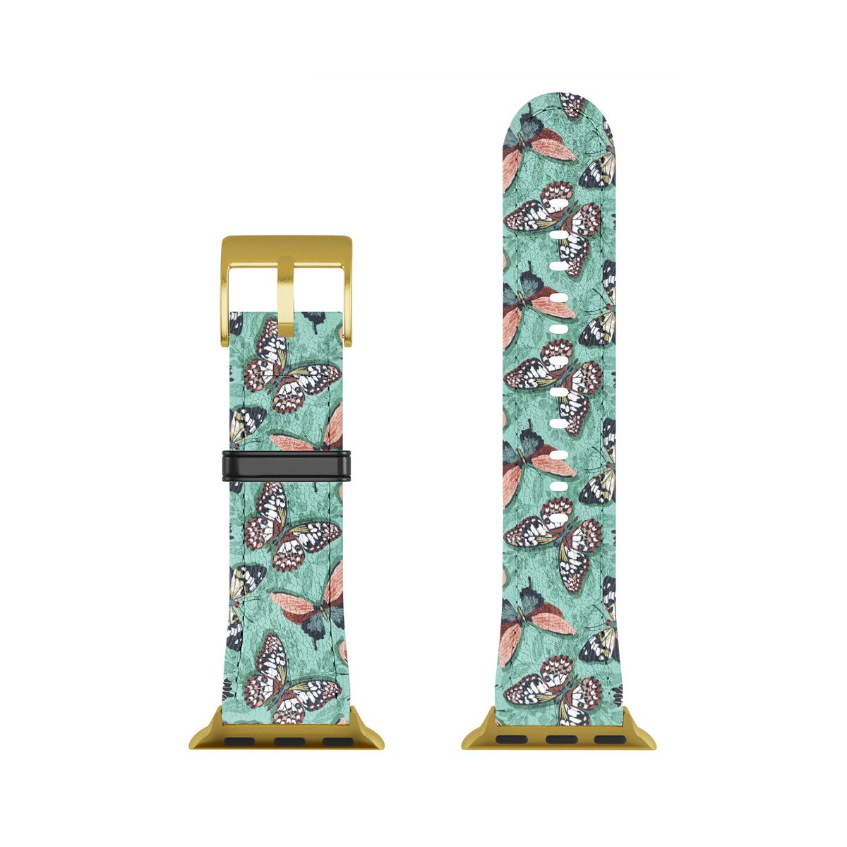 Heather Dutton Mariposa Boho Butterflies Aqua 42mm/44mm Gold Apple Watch Band - Society6