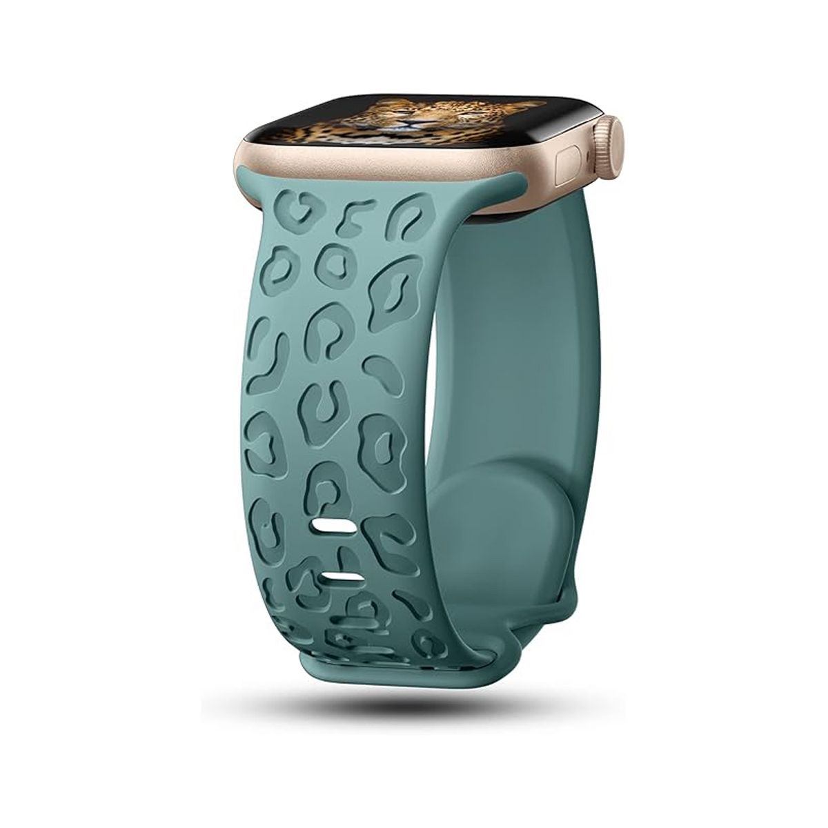 HTUTWOO Apple Watch Band 38mm 40mm 41mm, Leopard Pattern Soft Silicone Strap Compatible with iWatch Series 10 9 8 7 6 5 4 3 2 1 Ultra,Green