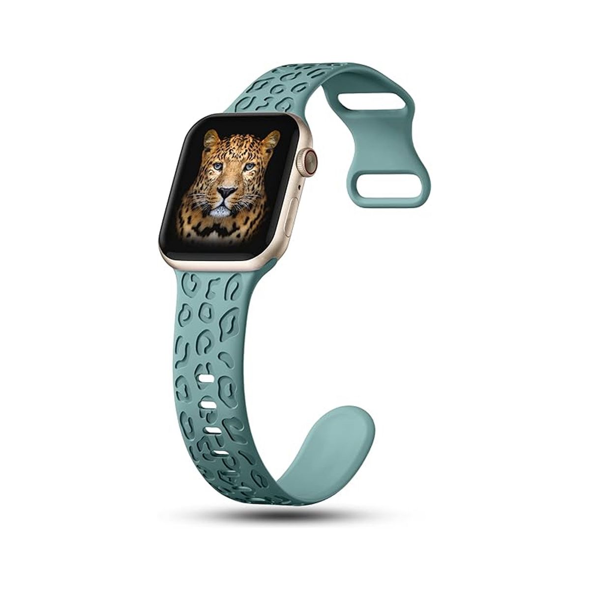 HTUTWOO Apple Watch Band 38mm 40mm 41mm, Leopard Pattern Soft Silicone Strap Compatible with iWatch Series 10 9 8 7 6 5 4 3 2 1 Ultra,Green