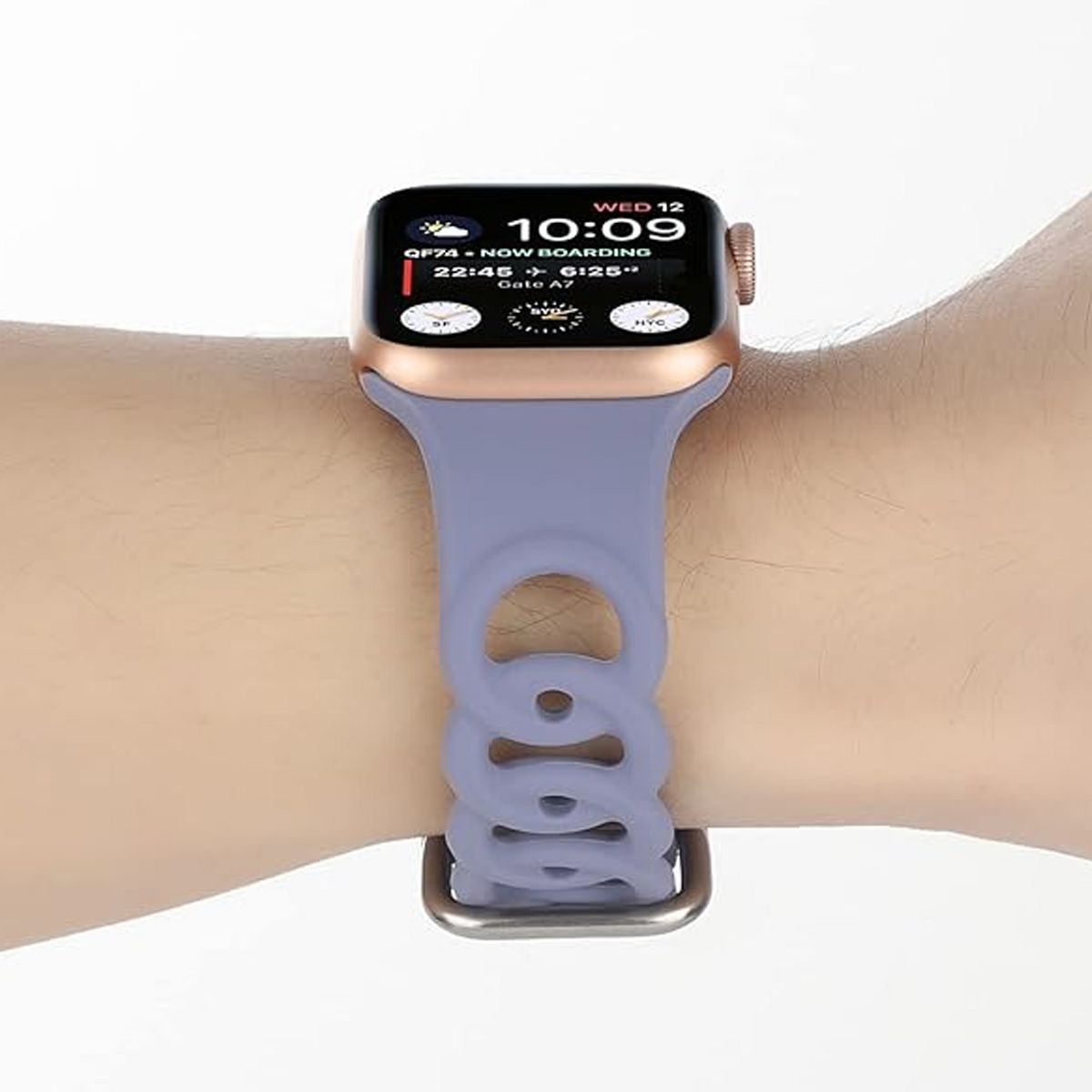 HTUTWOO Apple Watch Band Breathable Silicone Circles Sport Strap 44/45/46/49mm, Fadeless for iWatch Series 10 9 8 7 6 5 4 3 2 1 SE Ultra,Lavender Gray