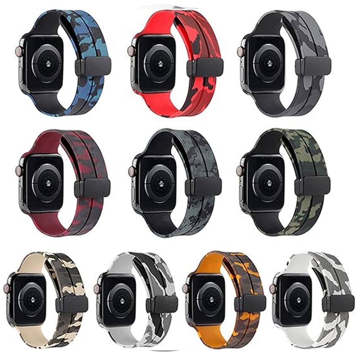 This Apple Watch Band combines trendy camouflage style with reliable sporty functionality, designed specifically for users with iWatch cases who want to add a bold, casual edge to their smartwatch while enjoying all-day comfort. Crafted from high-quality soft silicone, it delivers the flexibility and durability needed for daily wear and active lifestyles—whether you’re hitting the gym, going for a hike, or running errands—while the vibrant camouflage print elevates your look beyond basic solid-color straps.