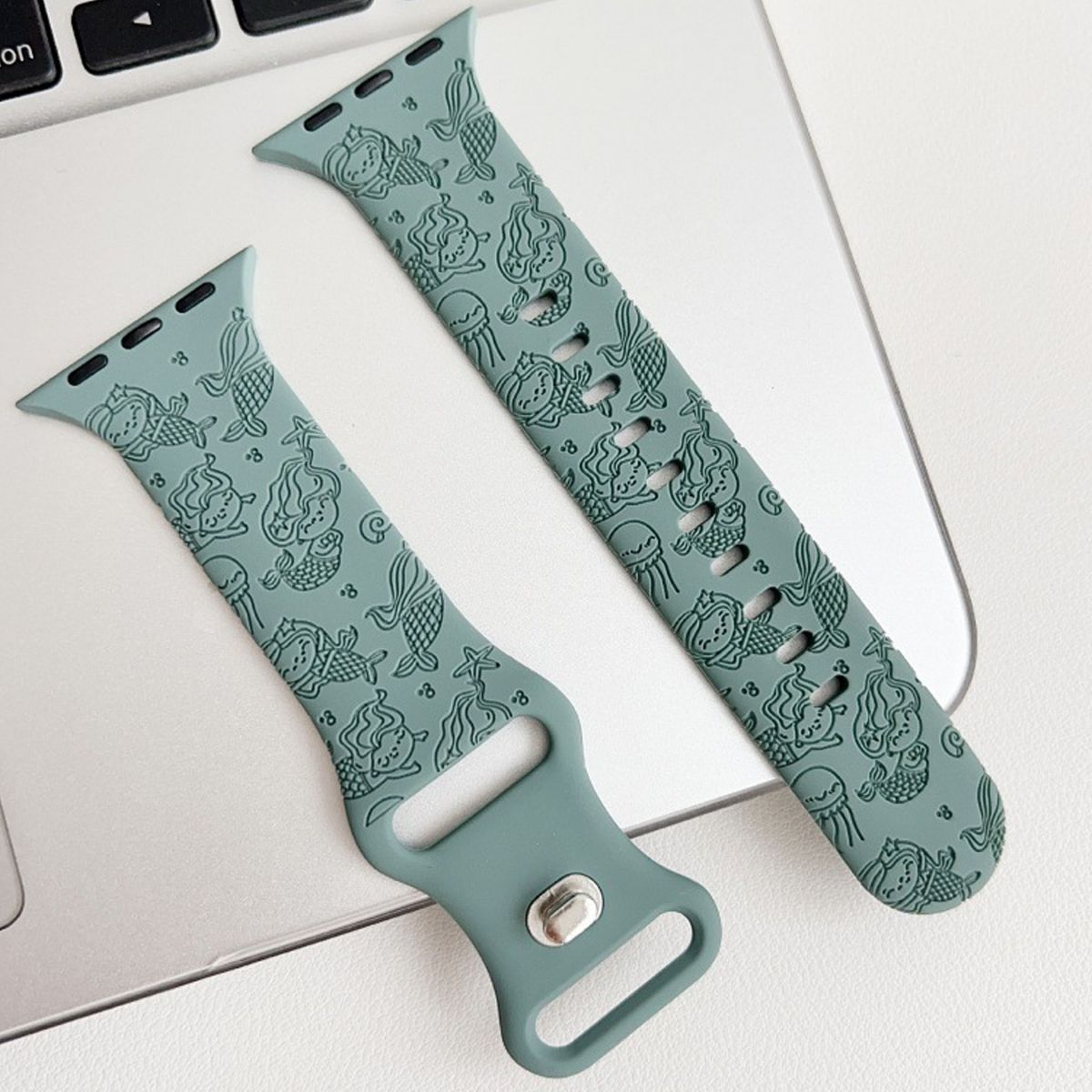 This Apple Watch Band combines playful style with everyday comfort, featuring a vibrant mermaid pattern and soft silicone material—designed for watch cases and fully compatible with Apple Watch Series 10, 9, 8, 7, 6, 5, 4, 3, 2, 1, SE, and Ultra models. Crafted from high-grade, skin-friendly silicone, the strap delivers a lightweight, flexible fit that adapts to wrist shapes, making it ideal for all-day wear—whether you’re at work, hitting the gym, or enjoying casual outings.
