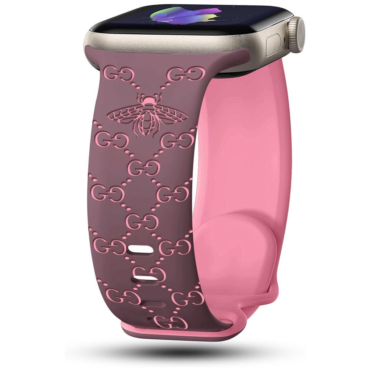 HTUTWOO Bee Engraved Apple Watch Band, Two Tone Silicone Sports Strap 38/40/41mm for iWatch Series 10 9 8 7 6 5 4 3 2 1 SE Ultra, Pink