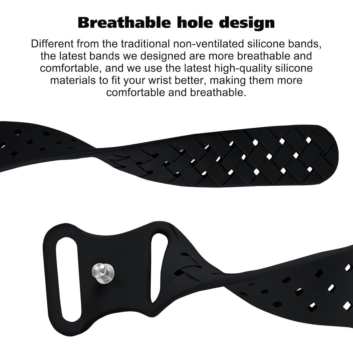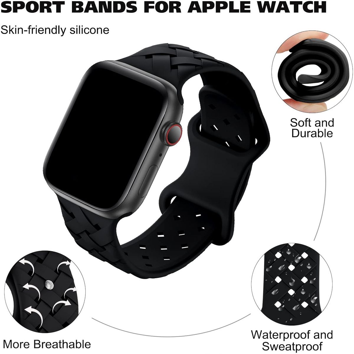 The braided weave texture adds a modern, textured look that stands out from basic solid straps, while remaining versatile enough for daily wear and workouts; the high-quality silicone material is soft, sweat-resistant, and skin-friendly—prevents irritation during long-term use, even during intense exercise; and it uses Apple’s standard quick-release pins for tool-free installation, allowing you to switch bands in seconds without extra effort. Whether you’re hitting the gym, running errands, or going about your daily routine, this braided silicone sport band blends breathability, durability, and on-trend style.