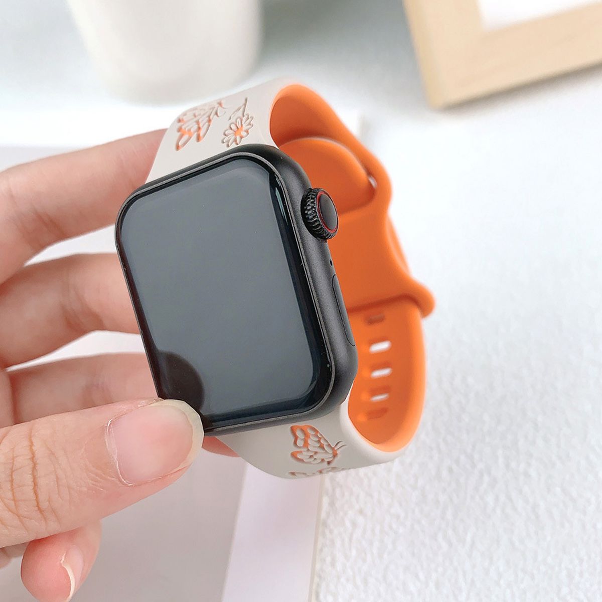 This Butterfly Engraved Apple Watch Band merges whimsical elegance with sporty functionality, featuring intricate butterfly engravings, a eye-catching two-tone silicone design, and a lightweight, flexible structure—tailored exclusively for Apple Watch models, including iWatch Series 10, 9, 8, 7, 6, 5, 4, 3, 2, 1, SE, and Ultra. Designed to elevate smartwatch customization, the strap stands out with its detailed butterfly engravings: precision-carved into the silicone surface, these motifs add subtle texture and a playful, nature-inspired charm, while the two-tone color scheme creates visual depth—avoiding monotony and making the band a statement accessory that complements diverse personal styles.