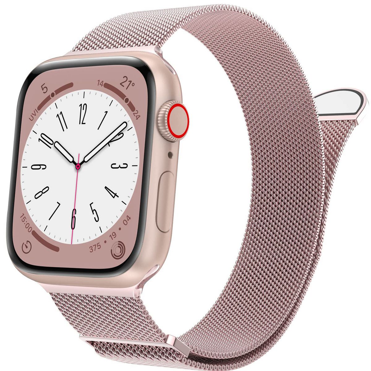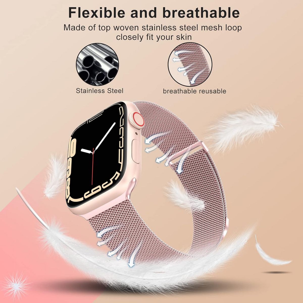 This replacement band, compatible with all Apple Watch Series models, is designed to cater to both women and men, merging style with practicality. Crafted from premium stainless steel, the mesh loop boasts a sleek, interconnected design that offers a comfortable, breathable fit—ideal for all-day wear, whether you’re at work, exercising, or out and about. The magnetic clasp is a standout feature, allowing for effortless adjustment to your wrist size without the need for tools; simply align the magnets for a secure, customized fit. With its versatile aesthetic, this band transitions seamlessly from casual daily activities to more formal occasions, making it a versatile addition to any smartwatch owner’s accessory collection.