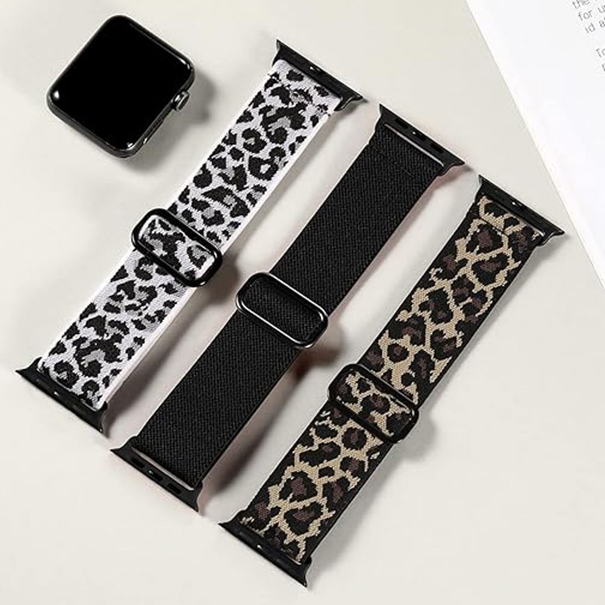 HTUTWOO Compatible with Apple Watch Nylon Stretchy Solo Loop Watch Band 38/40/41mm, Adjustable Strap for iWatch Series 1-10,SE, Ultra(Yellow Leopard)