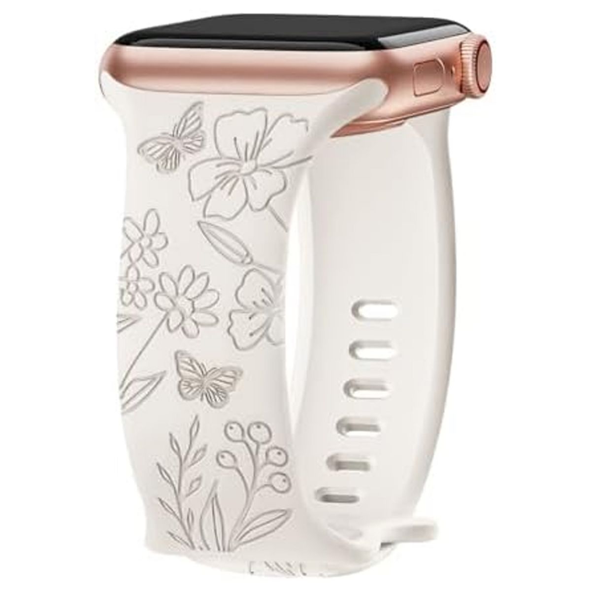 This Engraved Butterfly Apple Watch Band blends delicate style with everyday comfort, featuring intricate butterfly engravings on a soft silicone strap—designed to add a whimsical, feminine touch to your iWatch while ensuring all-day wearability. It’s fully compatible with iWatch Series 10, 9, 8, 7, 6, 5, 4, 3, 2, 1, SE, and Ultra models, making it a versatile replacement band for diverse watch generations. Crafted from high-quality, skin-friendly silicone, the strap balances durability with flexibility, making it suitable for both casual outings and active moments—elevating your iWatch from a functional device to a stylish accessory.