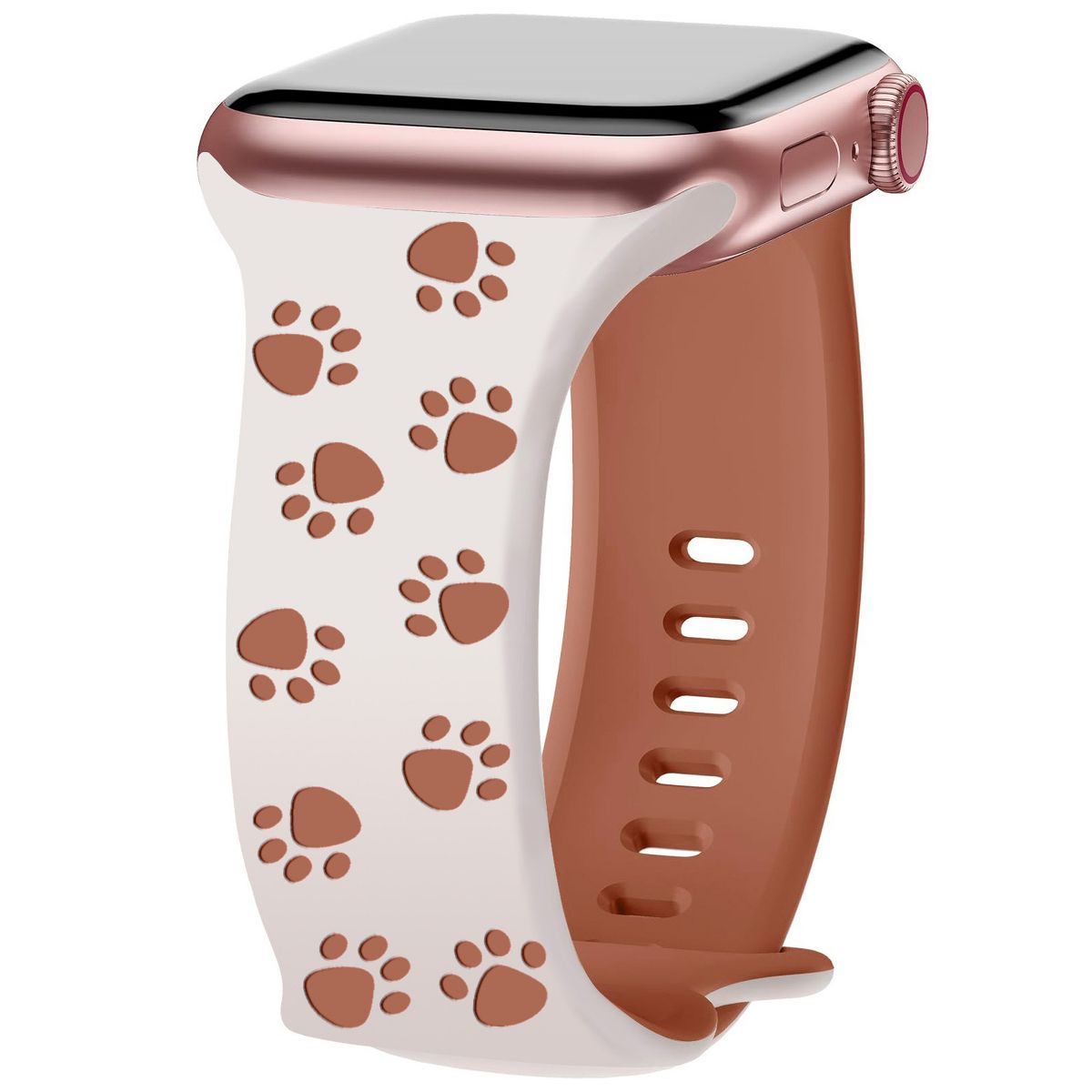 HTUTWOO Engraved Cat Paw Apple Watch Band, Sport Silicone Strap 38/40/41mm for iWatch Series 10 9 8 7 6 5 4 3 2 SE Ultra (White+Pink)