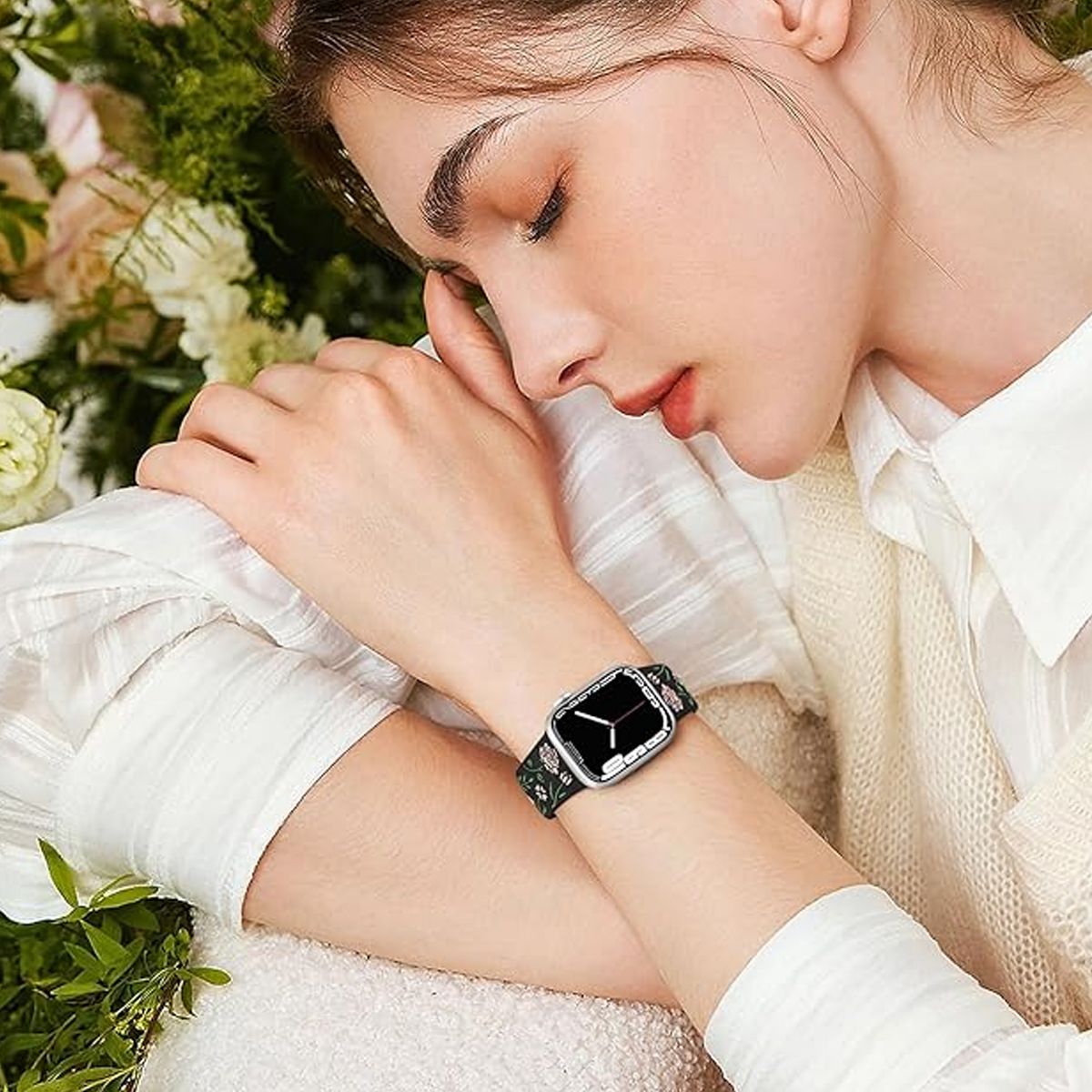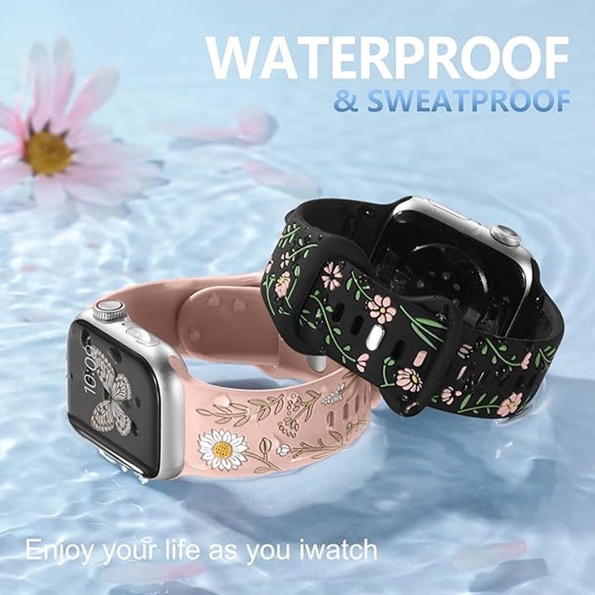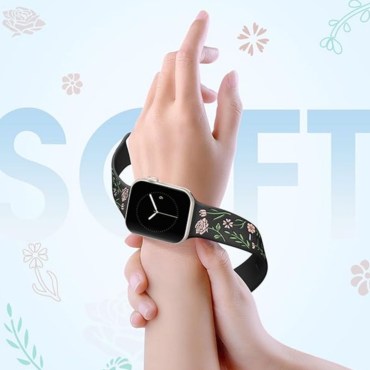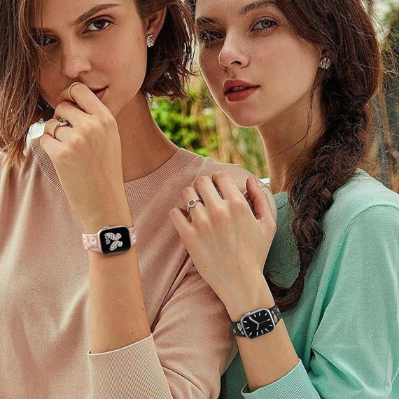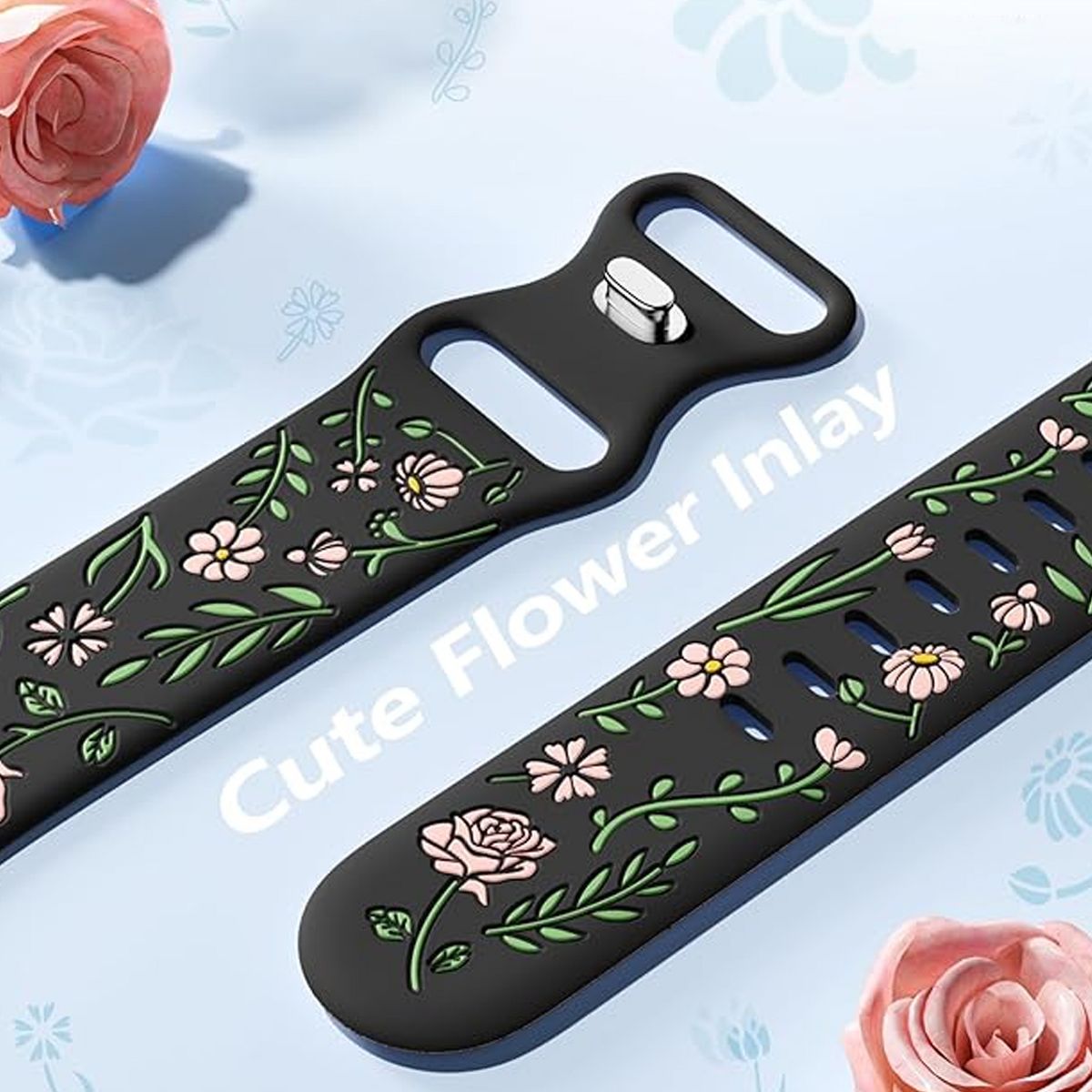Apple Watch bands for women feature a multi-tone silicone inlay, combining stunning aesthetics with long-lasting durability Inspired by nature, the vibrant fade-resistant floral patterns and rich hues bring the outdoors to your wrist, blending elegance with natural charm. Designed to stand out, this pretty floral accessory elevates your style while connecting you to nature—perfect for turning heads and earning compliments wherever you go