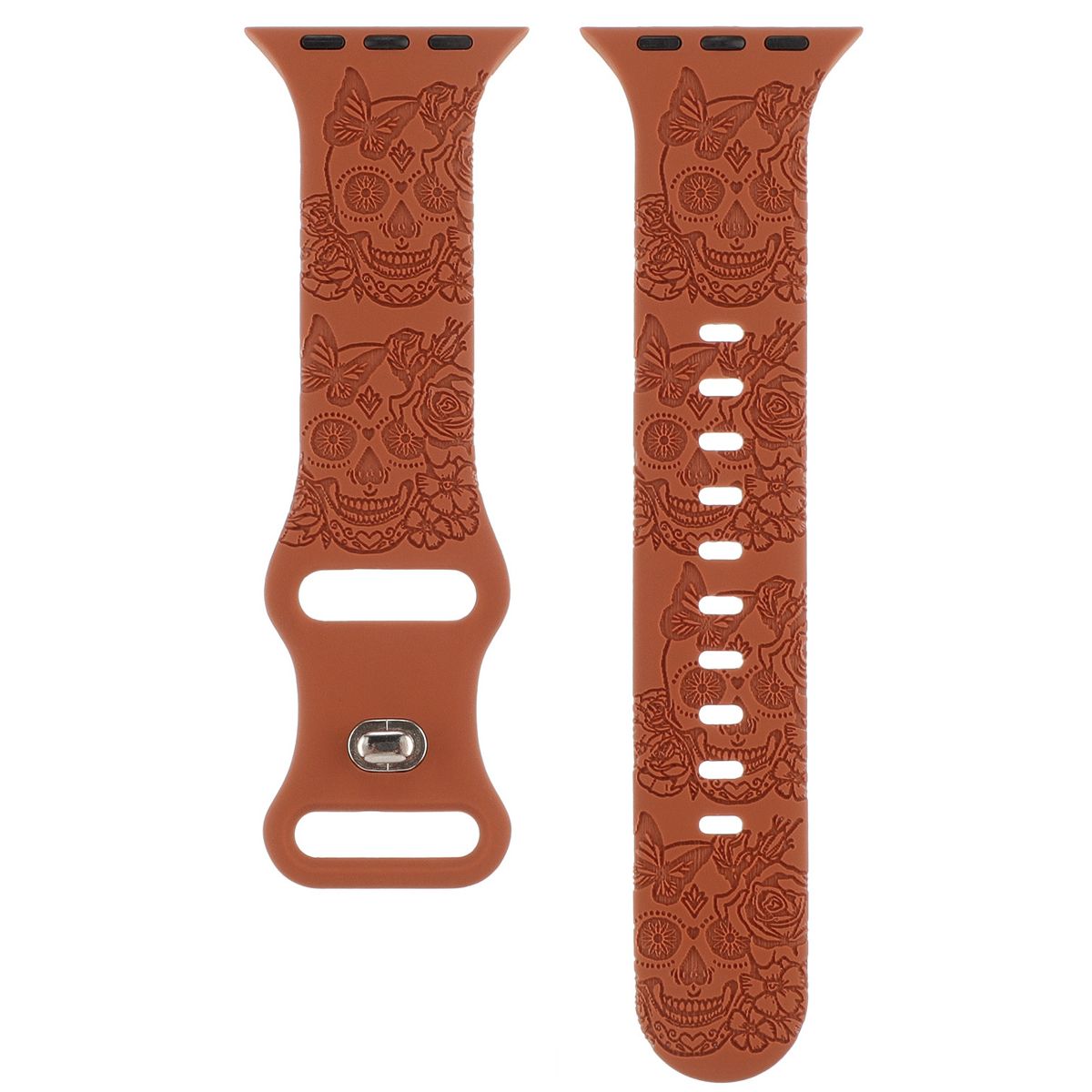 This Halloween Apple Watch Band blends spooky festive charm with everyday comfort, featuring a detailed skull engraved design and soft silicone material fully compatible with Apple Watch Series 10, 9, 8, 7, 6, 5, 4, 3, 2, 1, and SE models. Crafted from high-quality, skin-friendly silicone, the strap delivers a lightweight, flexible fit that conforms to wrist shapes, making it perfect for all-day wear during Halloween parties, trick-or-treating outings, or adding a seasonal twist to daily outfits.