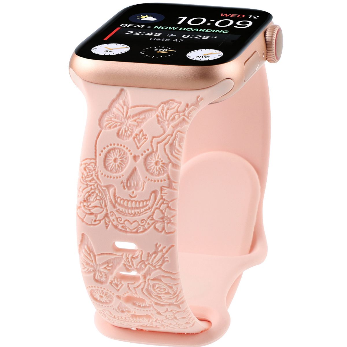 HTUTWOO Halloween Apple Watch Band, Skull Engraved Design Silicone Strap 38/40/41mm, for iWatch Series 10 9 8 7 6 5 4 3 2 1 SE (Pink)