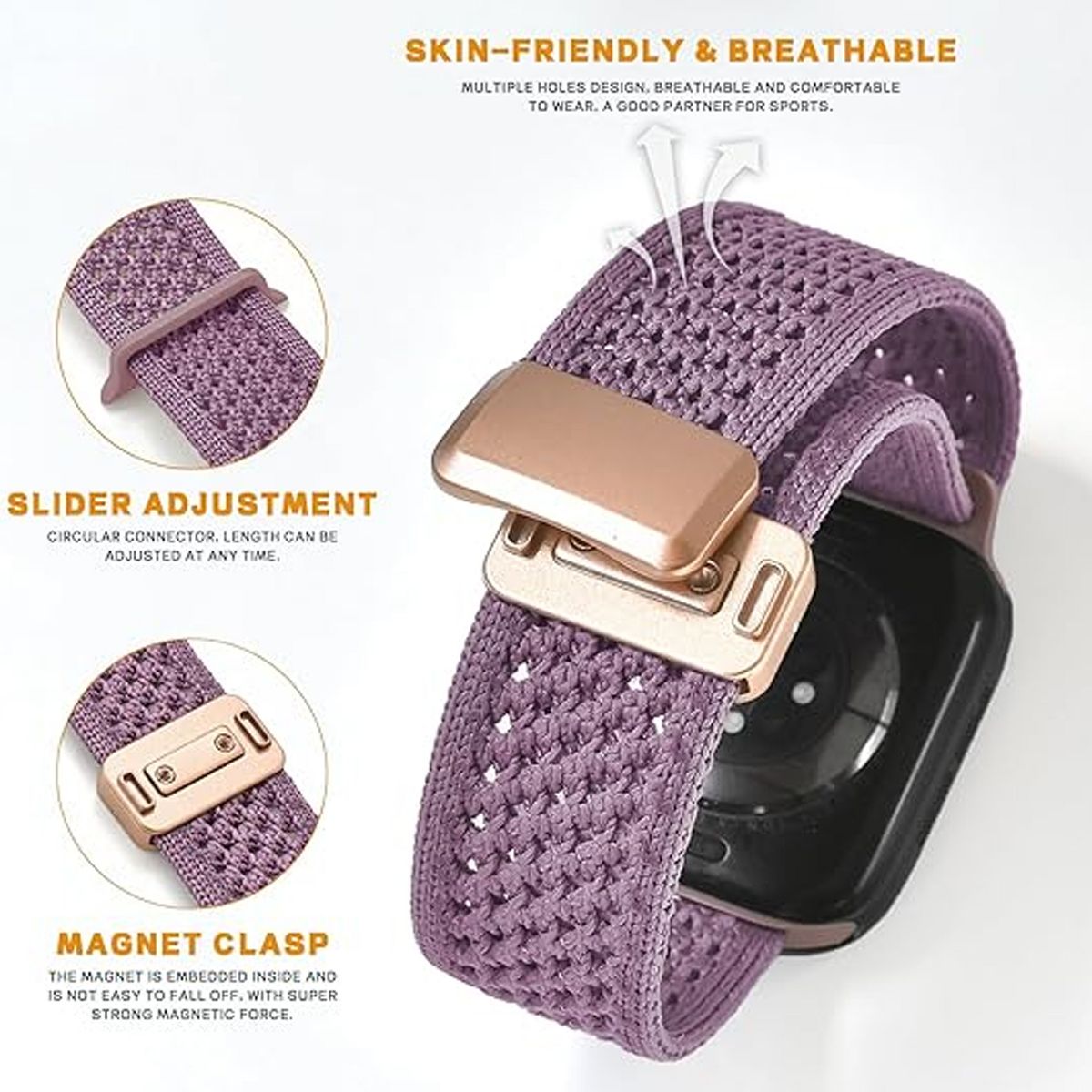 This Hollow Breathable Apple Watch Band redefines comfort and convenience for iWatch users, featuring a woven nylon construction with hollowed-out details, a secure magnetic closure, and universal compatibility with Apple Watch models—perfect for Series 10, 9, 8, 7, 6, 5, 4, 3, 2, 1, SE, and Ultra. Designed to prioritize breathability for all-day wear, the band combines functional design with a sleek, modern look that complements both casual and semi-formal styles.