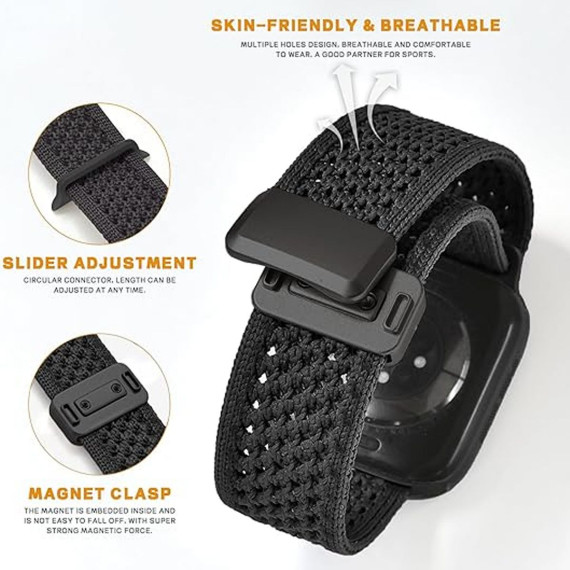 This Hollow Breathable Apple Watch Band redefines comfort and convenience for iWatch users, featuring a woven nylon construction with hollowed-out details, a secure magnetic closure, and universal compatibility with Apple Watch models—perfect for Series 10, 9, 8, 7, 6, 5, 4, 3, 2, 1, SE, and Ultra. Designed to prioritize breathability for all-day wear, the band combines functional design with a sleek, modern look that complements both casual and semi-formal styles.
