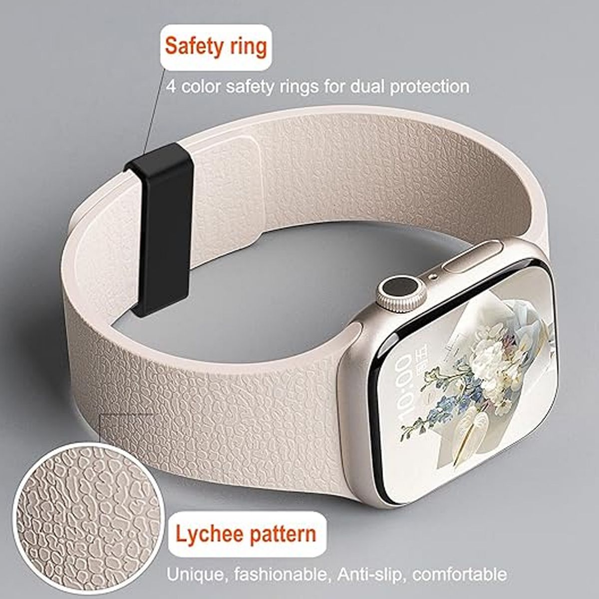 This Litchi-Textured Apple Watch Band merges luxurious tactile appeal with effortless functionality, featuring a soft silicone construction embossed with a realistic litchi texture, a secure magnetic closure, and universal compatibility with Apple Watch models—making it a stylish upgrade for iWatch Series 11, 10, 9, 8, 7, 6, 5, 4, 3, 2, 1, SE, and Ultra. Designed to balance comfort, durability, and aesthetic charm, it caters to daily wearers, fitness enthusiasts, and style-focused users alike, turning a basic watch strap into a subtle statement piece that complements casual, sporty, and even semi-formal looks.
