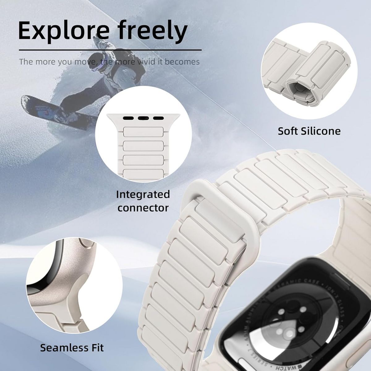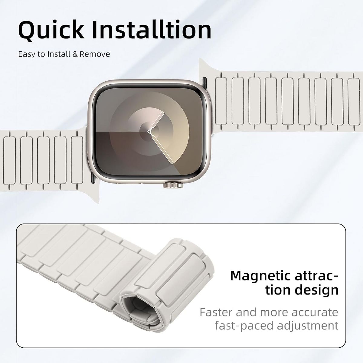 Compatibility: Magnetic silicone band designed for seamless compatibility with Apple Watch Ultra 2, Ultra, Series 10, 9, 8, 7, 6, 5, 4, 3, 2, 1, and SE models in sizes 49mm, 46mm, 45mm, 44mm, 42mm, 41mm,40mm and 38mm.