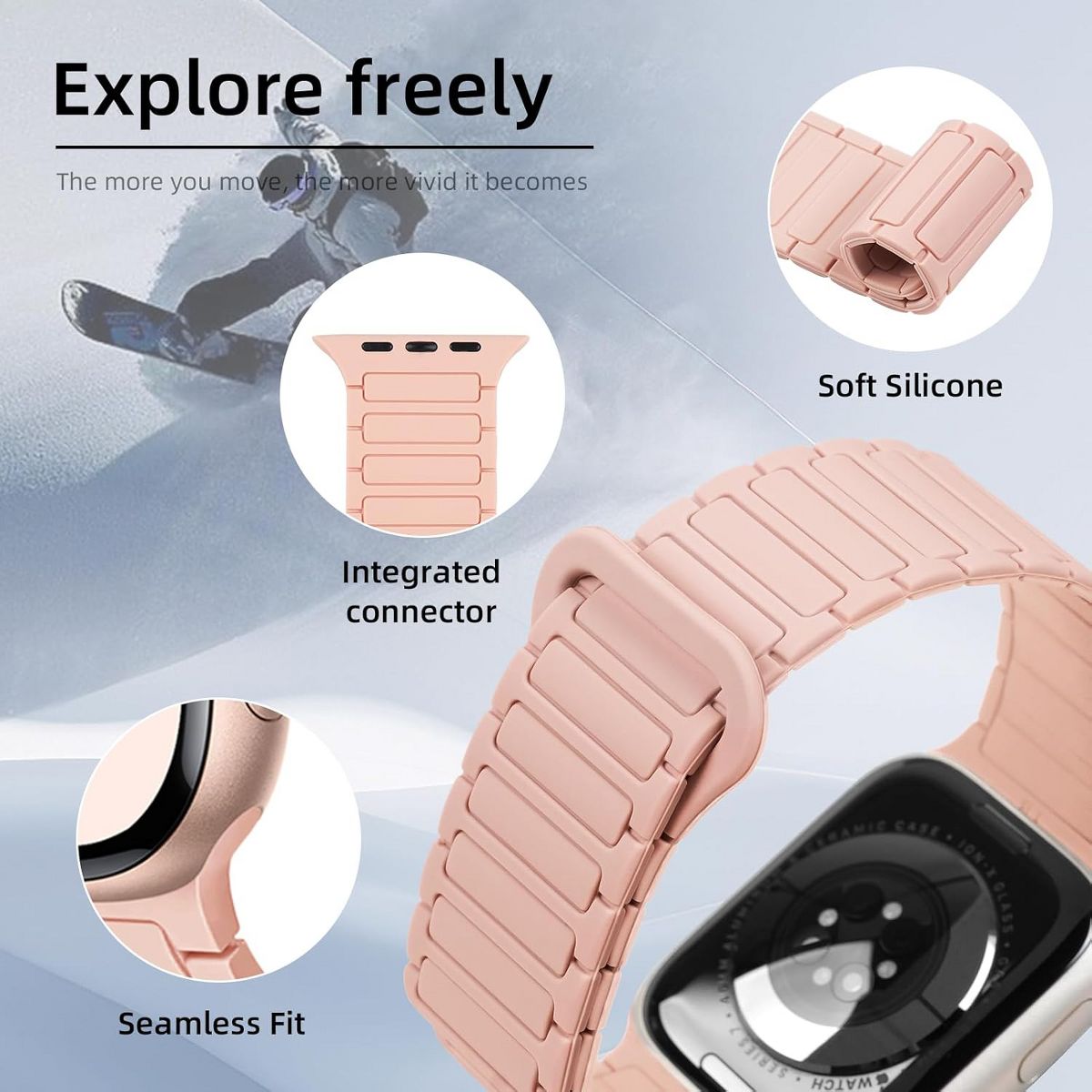 Compatibility: Magnetic silicone band designed for seamless compatibility with Apple Watch Ultra 2, Ultra, Series 10, 9, 8, 7, 6, 5, 4, 3, 2, 1, and SE models in sizes 49mm, 46mm, 45mm, 44mm, 42mm, 41mm,40mm and 38mm.