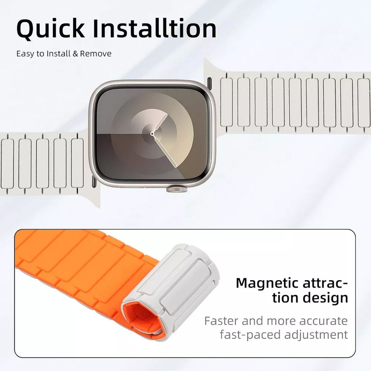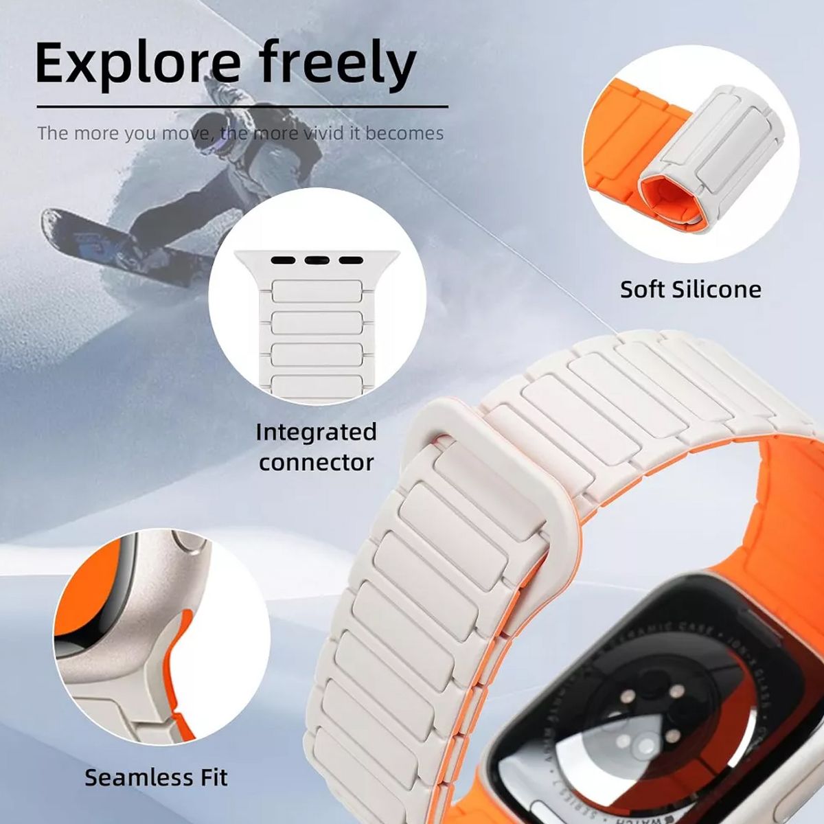 Compatibility: Magnetic silicone band designed for seamless compatibility with Apple Watch Ultra 2, Ultra, Series 10, 9, 8, 7, 6, 5, 4, 3, 2, 1, and SE models in sizes 49mm, 46mm, 45mm, 44mm, 42mm, 41mm,40mm and 38mm.