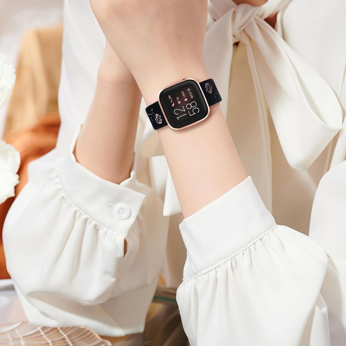 This Rose Floral Engraved Apple Watch Band combines elegant design with everyday comfort, featuring intricate rose floral engravings, a soft two-tone silicone construction that fits Apple Watch Series 11, 10, 9, 8, 7, 6, 5, 4, 3, 2, 1, SE, and Ultra models. Unlike plain silicone straps that lack personality or rigid engraved bands that feel uncomfortable, this watch band solves two key pain points for Apple Watch users: it adds a feminine, decorative touch via delicate rose floral engravings while retaining the flexibility and breathability of silicone for all-day wear; and its two-tone color scheme complements both casual and semi-formal outfits, making it versatile for work, workouts, or weekend outings.