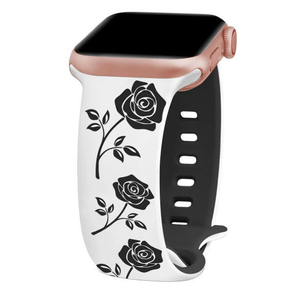 This Rose Floral Engraved Apple Watch Band combines elegant design with everyday comfort, featuring intricate rose floral engravings, a soft two-tone silicone construction that fits Apple Watch Series 11, 10, 9, 8, 7, 6, 5, 4, 3, 2, 1, SE, and Ultra models. Unlike plain silicone straps that lack personality or rigid engraved bands that feel uncomfortable, this watch band solves two key pain points for Apple Watch users: it adds a feminine, decorative touch via delicate rose floral engravings while retaining the flexibility and breathability of silicone for all-day wear; and its two-tone color scheme complements both casual and semi-formal outfits, making it versatile for work, workouts, or weekend outings.