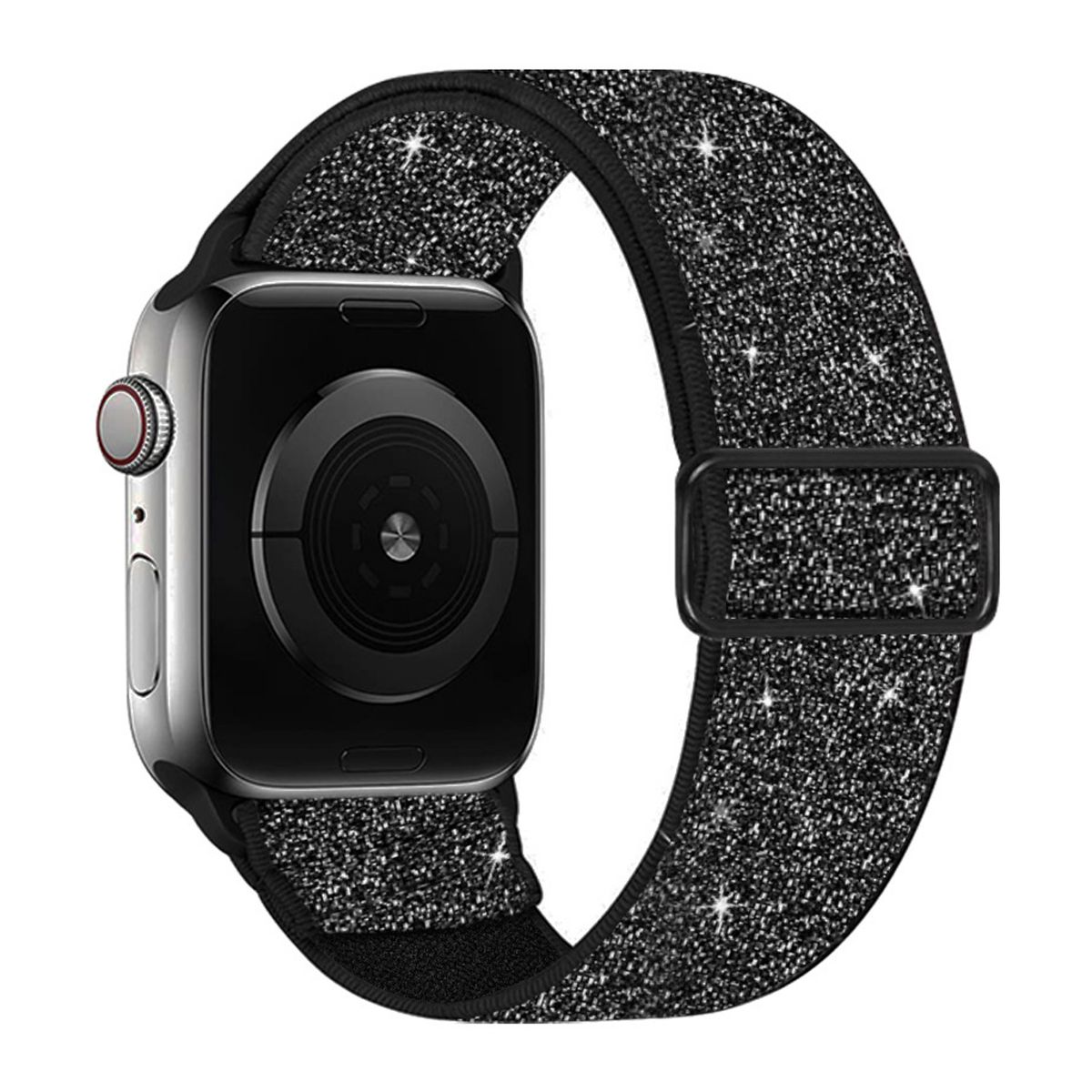 HTUTWOO Shiny Apple Watch Band, Nylon Stretchy Strap 38/40/41mm for iWatch Series 11 10 9 8 7 6 5 4 3 2 1 SE Ultra (Black)