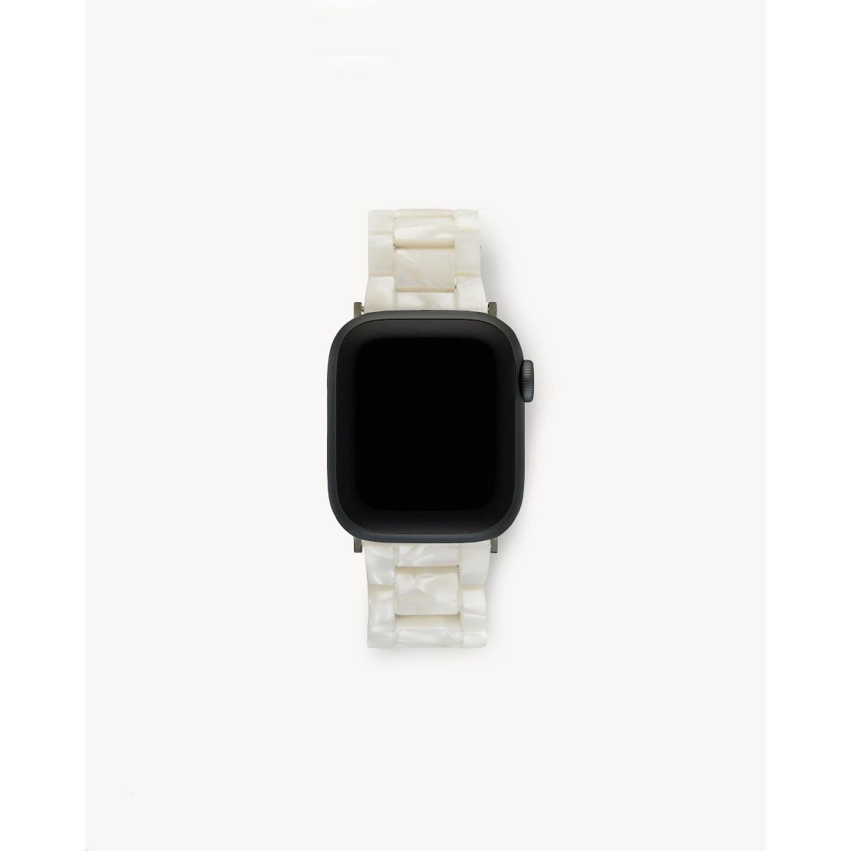 rA classic oyster-style band, reimagined for the Apple watch in our fine Italian acetate. Deluxe edition includes a resizing kit and adaptable connector for a universal fit. Black Hardware Color