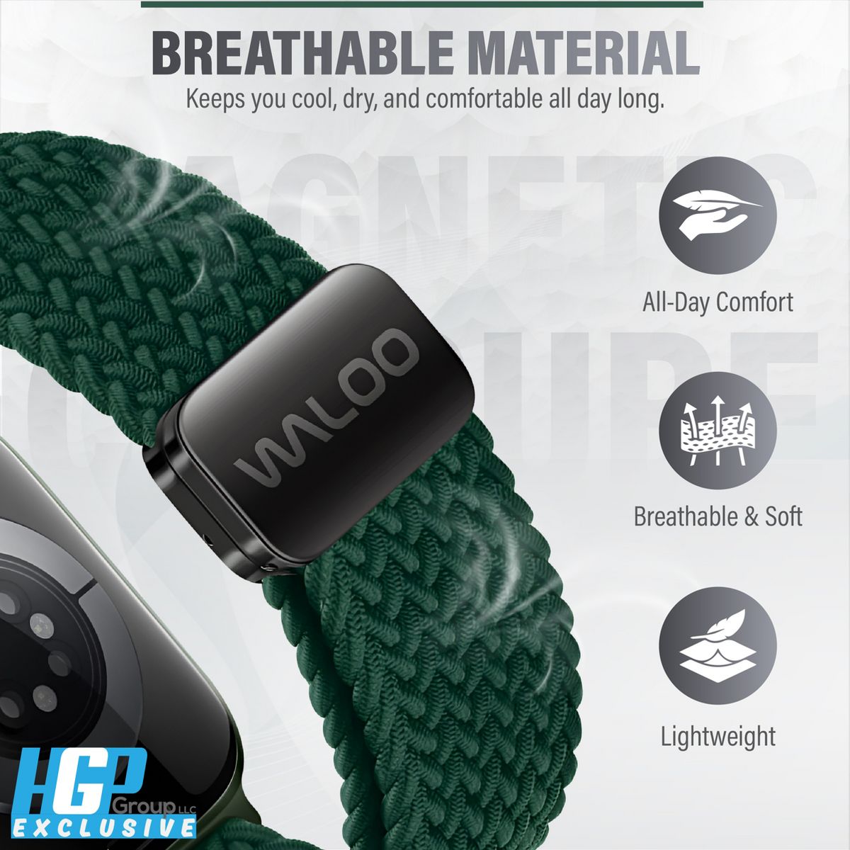 The Waloo Braided Nylon Magnetic Apple Watch Replacement Band combines premium craftsmanship with everyday functionality. Its soft, breathable weave feels gentle against the skin, while the adjustable magnetic closure ensures a secure, customized fit. Lightweight yet durable, this band is perfect for workouts, office wear, and casual outings, making it a versatile choice for any occasion.
