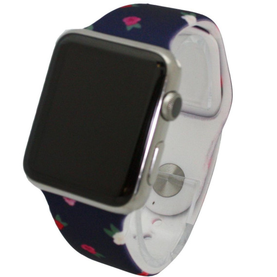 Multicolored Flowers Printed Silicone Apple Watch Band 38MM