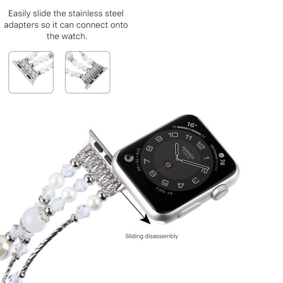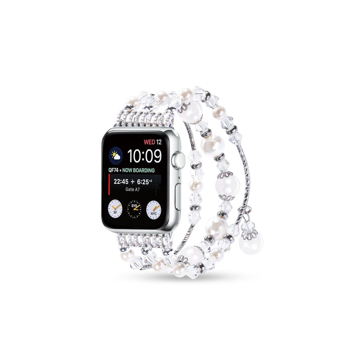 Transform your Apple Watch into a sophisticated piece of jewelry with the MyBat Pro Pearl Watchband. Featuring regal agate pearl beads and chic silver links, it elevates your look with refined beauty.