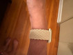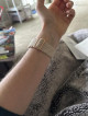 This woven watch band looks so much more stylish than the standard plastic bands and is just as comfortable. The mauve/brown and off-white look great with my rose gold face! With no clasp, it has just enough stretch to get over your hand, then sits very comfortably on your wrist. After taking it on and off several times, you do have to tighten up the band to fit properly again. Because it isn't plastic, it can move a bit on your wrist which makes it much more comfortable, especially if wearing it while sleeping.