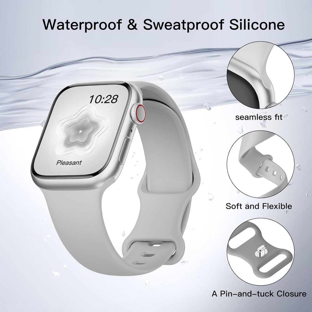 These North Silicone Apple Watch Bands are compatible with any 38/40/41mm Apple Watch and the new 42mm Series 10 Apple Watch. Please check the size on the back of your watch to choose the correct band size. Made from soft, durable, premium silicone for a comfortable fit. It provides exceptional breathability with a sporty casual look that connects seamlessly to your device. The pin-and-tuck closure buckle is adjustable with multiple size options to ensure your watch is secure. These bands are sized to fit most wrists (5.1" - 7.1" wrists). With 5 stylish colors (White, gray, aqua, beige, and black) you will have a band for every occasion.