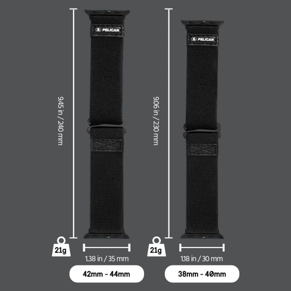 Stay connected in any environment with the Pelican Protector Series Watch Band. Whether you're hiking rugged mountain trails, navigating through urban landscapes, or working in tough conditions, this band ensures your Apple Watch stays secure. Crafted from durable elastic and featuring a reliable G-hook fastener, it offers both comfort and strength, without compromising on protection. For those who demand ultimate device protection, the Pelican Protector Series Watch Bumper shields your Apple Watch from scratches, scrapes, and impacts that could disrupt your connection. Made from tough TPU, this bumper creates a rugged barrier that maintains full functionality while delivering the trusted durability you expect from Pelican.