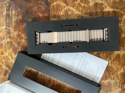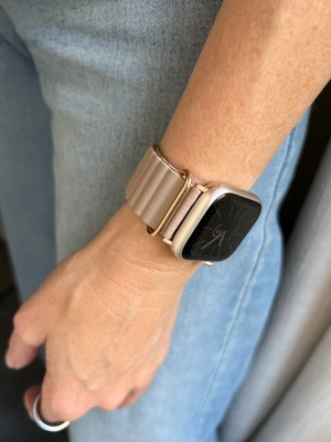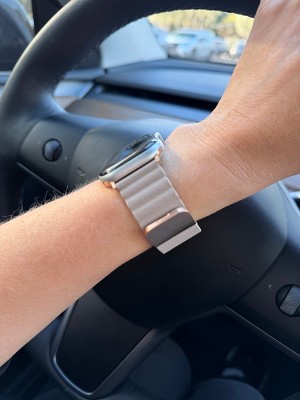 Posh Tech Riley Magnetic Vegan Leather Band for Apple Watch, a perfect blend of style and functionality. Crafted with premium genuine leather, this band exudes sophistication and elevates your Apple Watch to new heights. Riley is also highly versatile, complementing any outfit or occasion. Whether it's a formal event or a casual outing, this band adds a touch of elegance to your Apple Watch, making it a stylish accessory that seamlessly blends with your personal style. Riley features a magnetic closure that provides a secure and hassle-free fit. The magnetic clasp ensures easy attachment and removal, allowing you to effortlessly put on or take off your Apple Watch. Enjoy a sustainable alternative to leather, with this vegan microfiber leather material, with the same luxurious feel.
