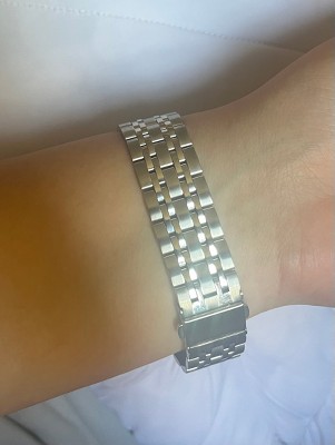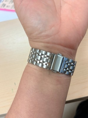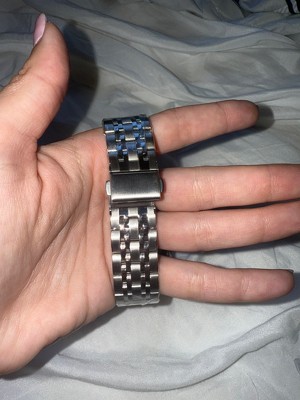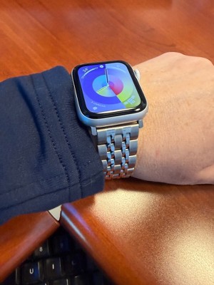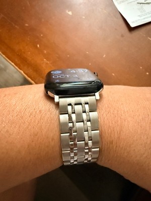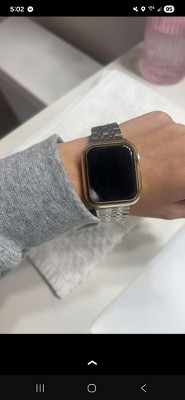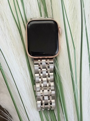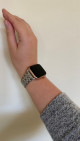 The two tone metal in Stellas design gives off the sophistication of a luxury watch while maintaining the comfort of your Apple Watch. Stellas double button clasp locks on your watch easily and securely, ensuring a smooth wear. This band comes with a size ajusting tool which allows you to remove excess links to achieve the perfect fit for your wrist, further personalizing your Apple Watch, and making it even more you!