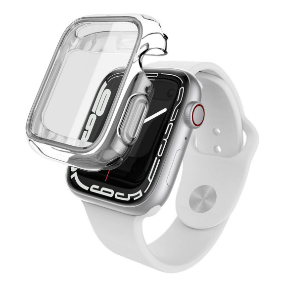 The Raptic 360x for Apple Watch 41mm Series 7 is the best protection you can get! The hybrid glass technology shields the display while allowing complete control, and the soft rubber bumpers protect the sides against dust and scratches. This Raptic 360x bumper has a crystal clear finish, so your Apple Watch retains its original elegant appearance and 100% functionality.