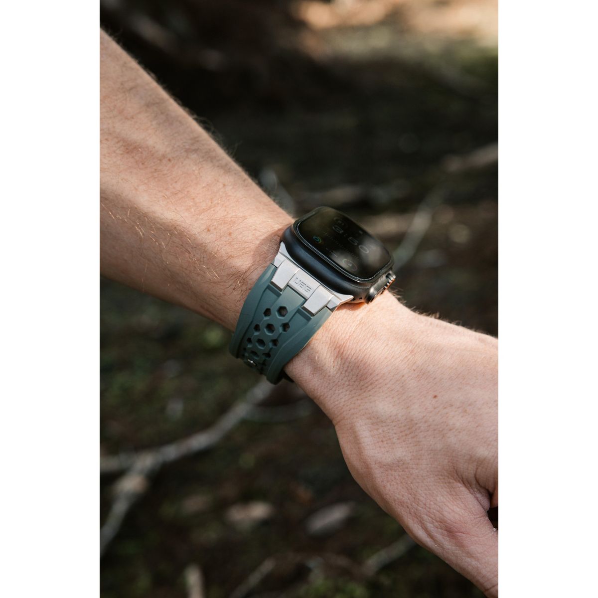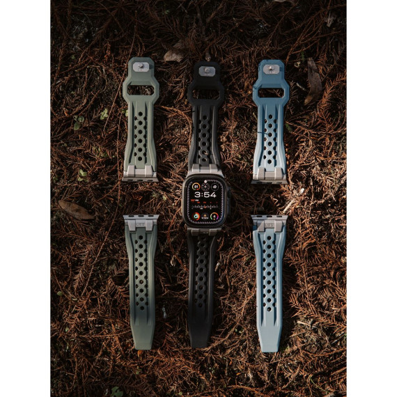 Forge your path with the Monarch Apple Watch Strap—the ultimate fusion of rugged strength and premium craftsmanship. Designed for those who demand durability without sacrificing style, this strap is built to withstand the elements while enhancing your look. Constructed from premium FKM fluoroelastomer, the Monarch delivers superior performance in any environment. The strap resists extreme temperatures, chemicals, UV rays, water, and dust, making it the perfect companion for outdoor adventures. The custom titanium-colored stainless steel hardware adds a touch of sophistication while ensuring durability you can count on. Its tuck-and-pin closure system keeps your strap secure and sleek, preventing snags and keeping the excess strap neatly out of the way for all-day comfort. The perforated design improves airflow, helping you stay cool, while bold accent colors add a modern edge. Rugged. Refined. Monarch.