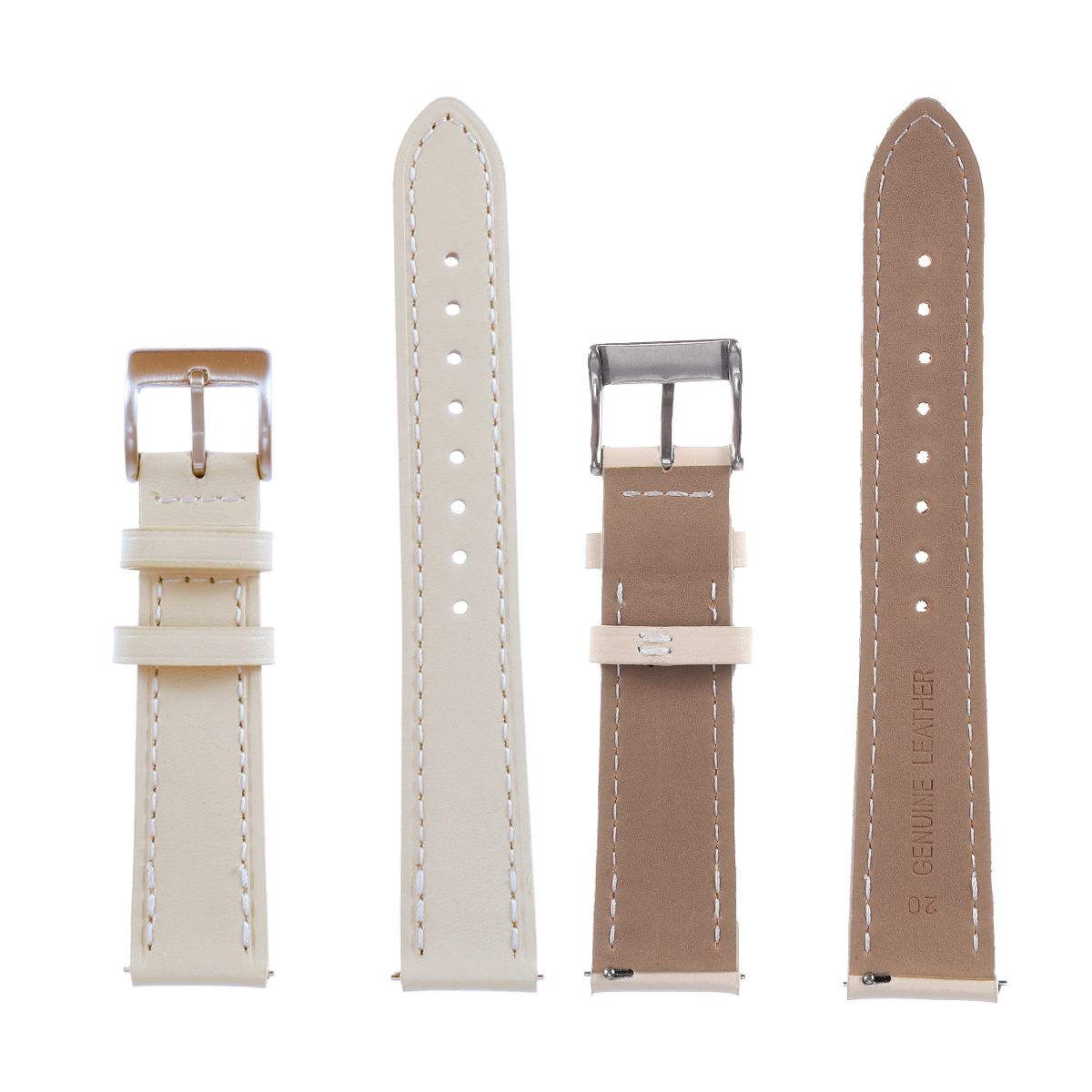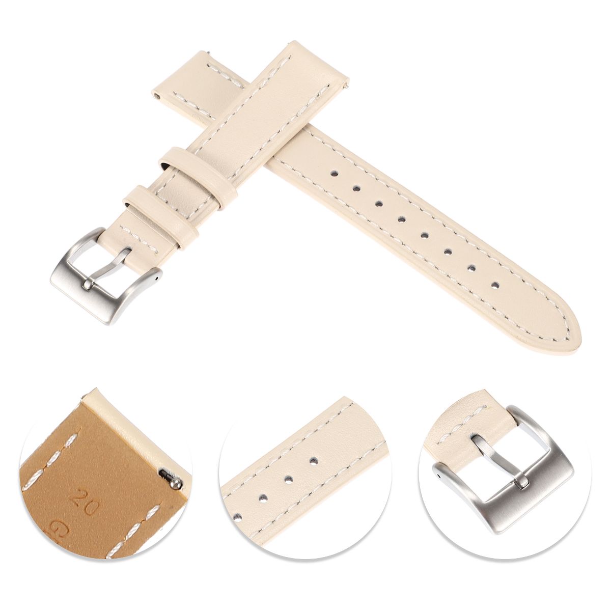 Item Function: 1. The watch band adopts a standard four-layer process. Its top layer is made of cowhide and can form a unique texture when wearing. It is moisture-proof and durable. 2. All sides of cowhide watch bands are stitched to ensure its durability. 3. This watch strap is available in different colors, which you can choose to meet your various needs. 4. The watch band fits most smart and traditional watches. Precision cut eyelets allow for individualized adjustment to fit properly. Quick Release design saves your time that makes it fast and simple to install and replace your watch band. Specification: Color: White; Material: Cowhide, Metal; Interface Width: 20mm / 0.79"; Package List: 1 Pc Watch Band.