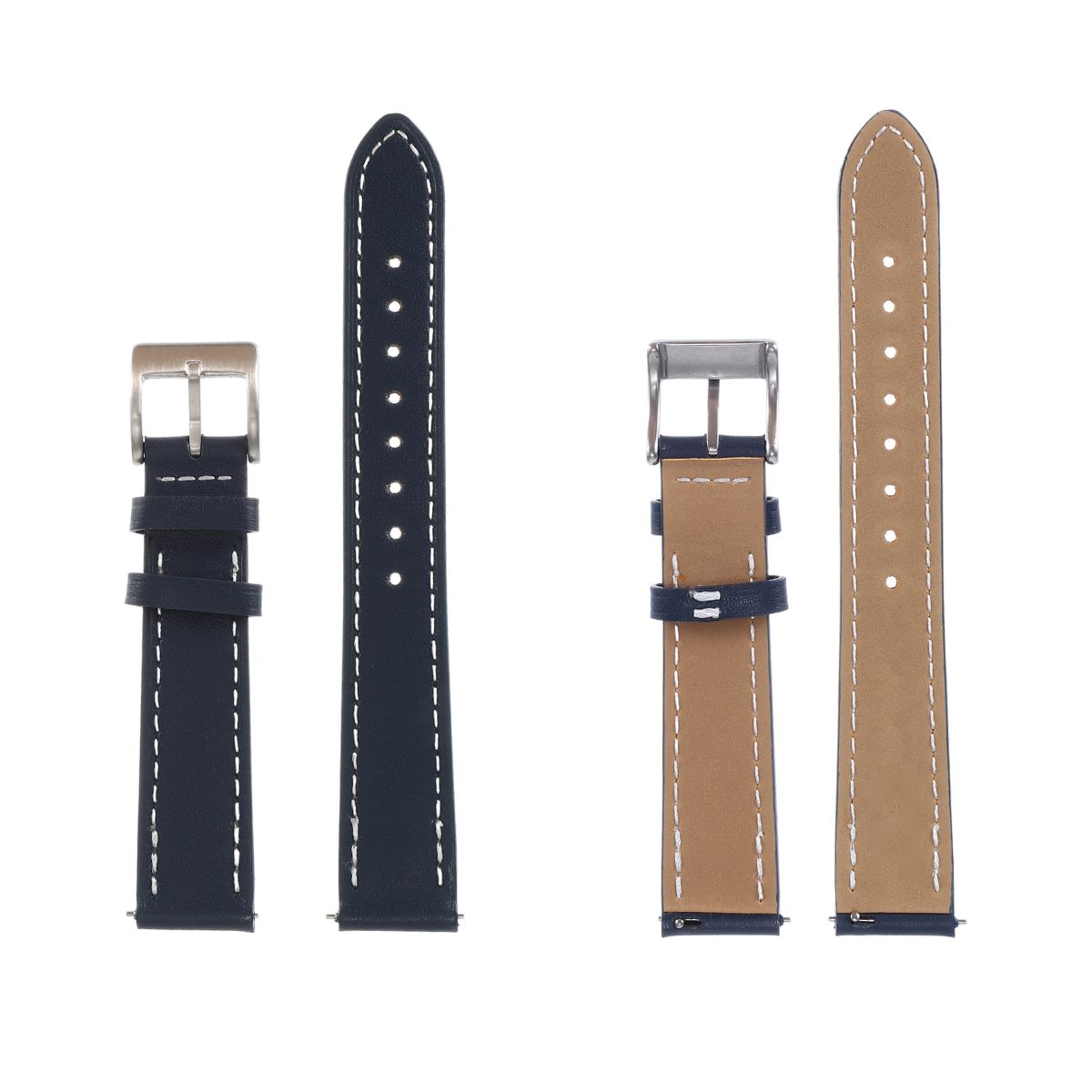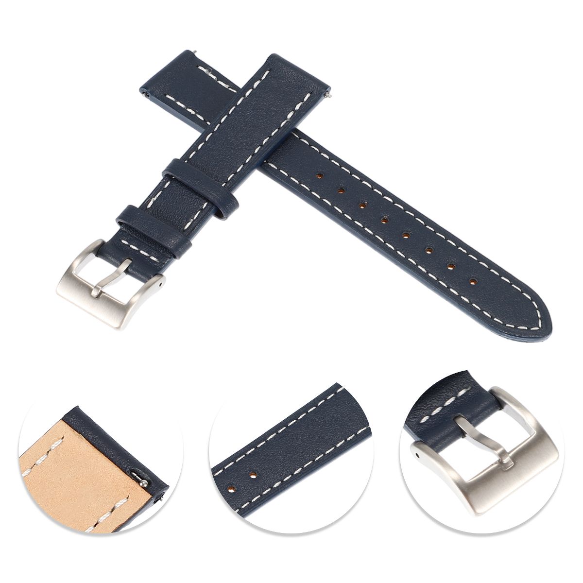 Item Function: 1. The watch band adopts a standard four-layer process. Its top layer is made of cowhide and can form a unique texture when wearing. It is moisture-proof and durable. 2. All sides of cowhide watch bands are stitched to ensure its durability. 3. This watch strap is available in different colors, which you can choose to meet your various needs. 4. The watch band fits most smart and traditional watches. Precision cut eyelets allow for individualized adjustment to fit properly. Quick Release design saves your time that makes it fast and simple to install and replace your watch band. Specification: Color: Navy Blue; Material: Cowhide, Metal; Interface Width: 22mm / 0.87"; Package List: 1 Pc Watch Band.