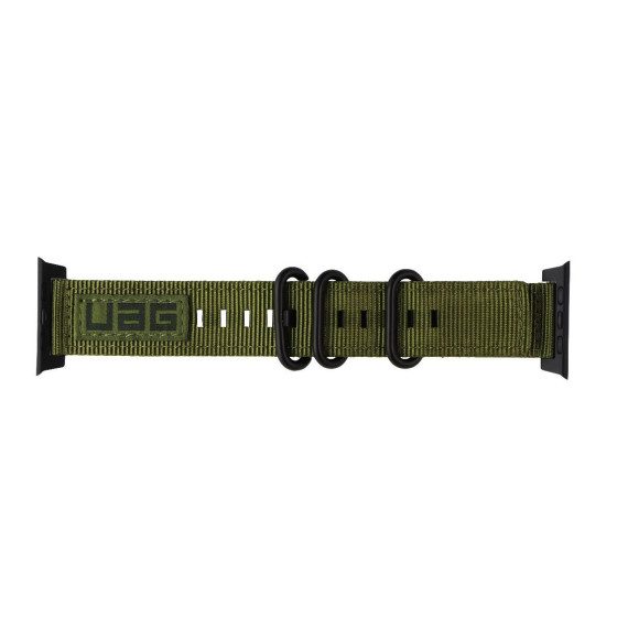 Urban Armor Gear Strap Band for Apple Watch 45/44/42mm, olive drab, combines military-inspired style and rugged durability.