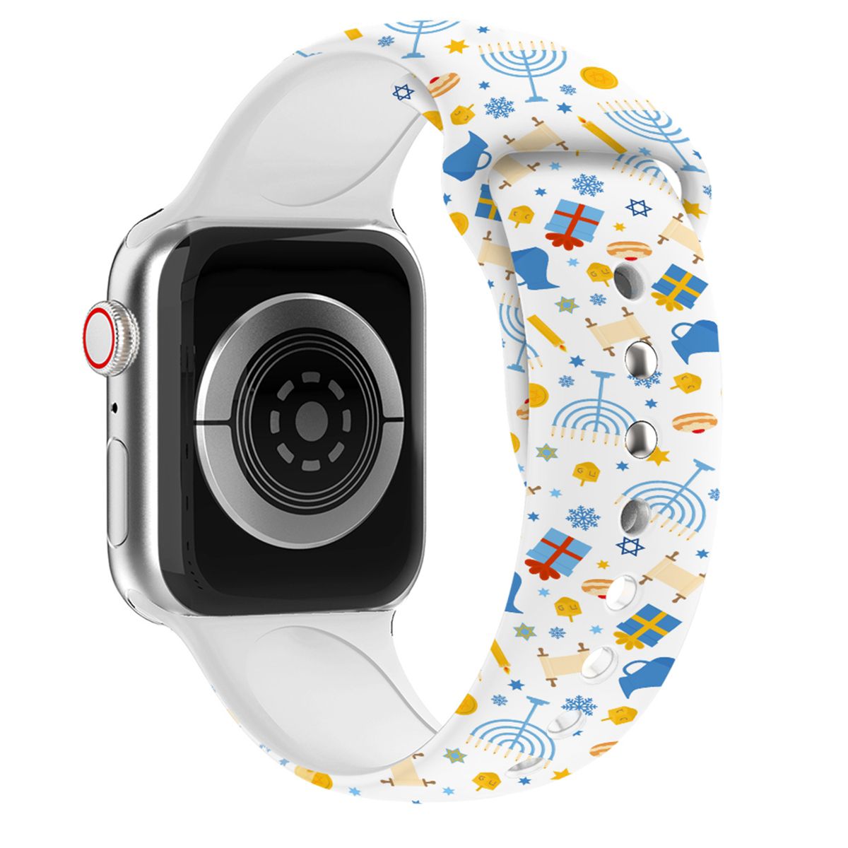 Our Hanukkah Silicone Band is compatible with all Apple Watch Series. Replacement band only. Apple Watch not Included.