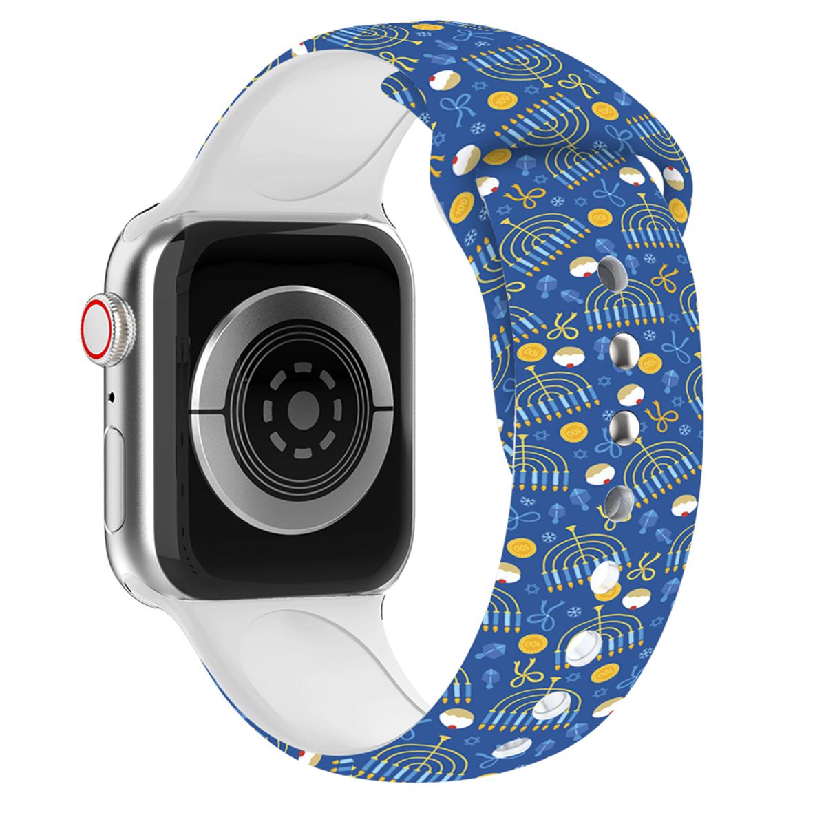 Our Hanukkah Silicone Band is compatible with all Apple Watch Series. Replacement band only. Apple Watch not Included.