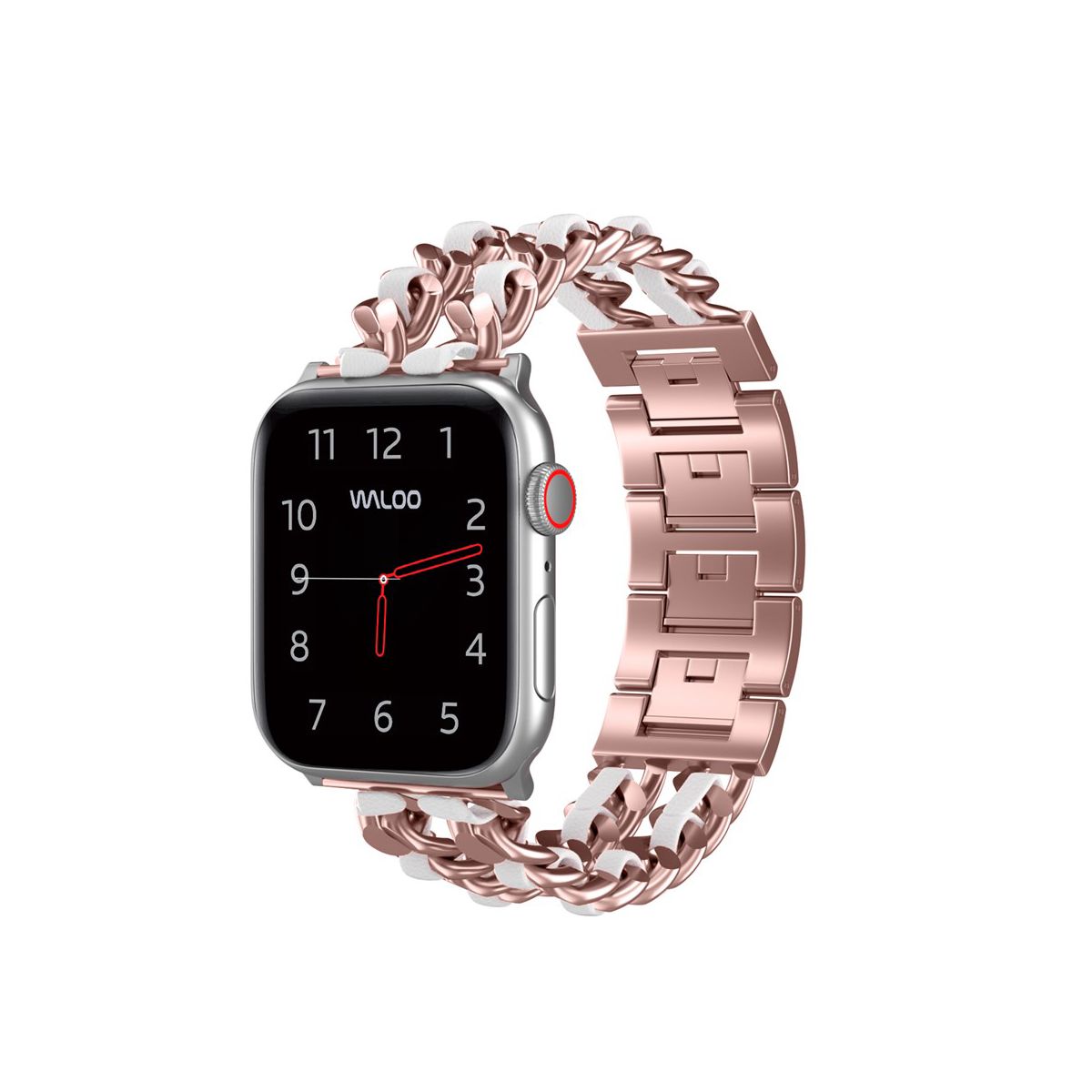 Waloo Leather Looped Metal Band For Apple Watch - 38/40/41mm - Rose Gold/White