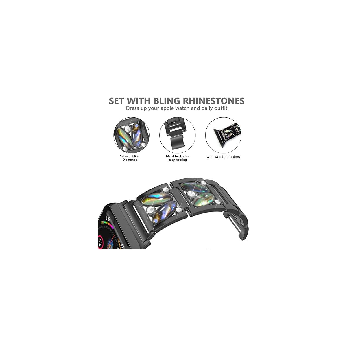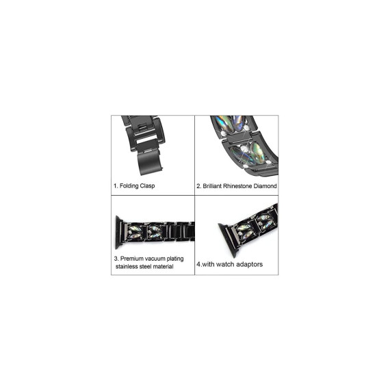 Worryfree Gadgets Alloy Metal Band with Rhinestone for Apple Watch 49mm - Black