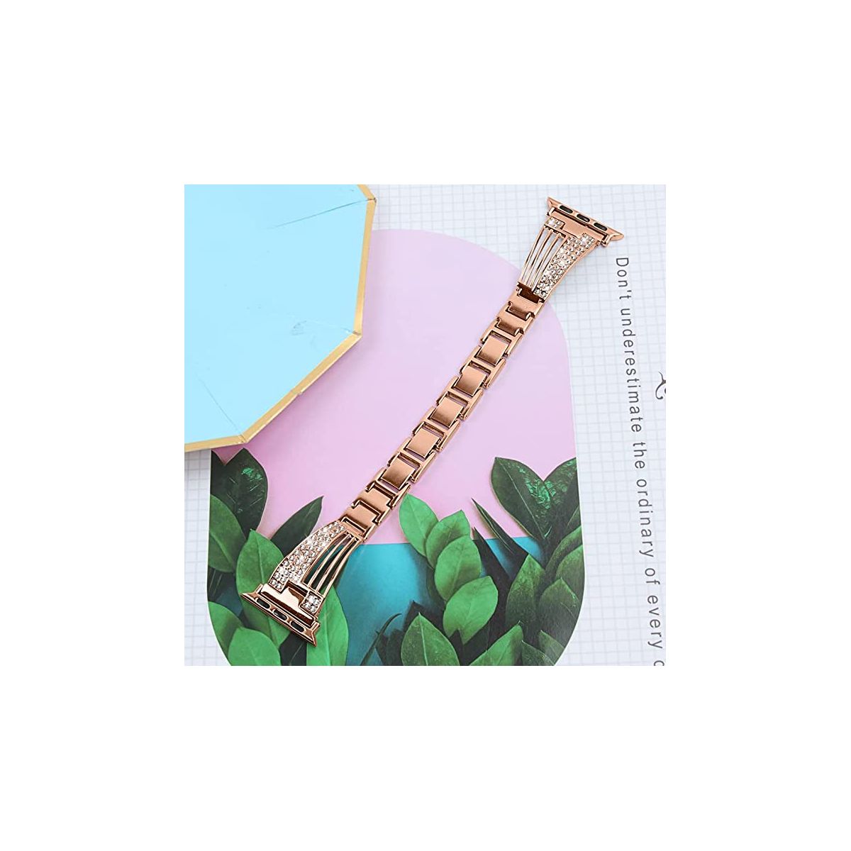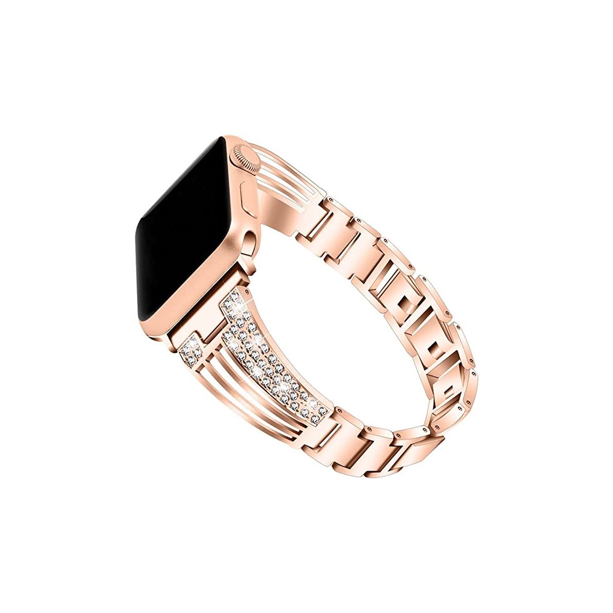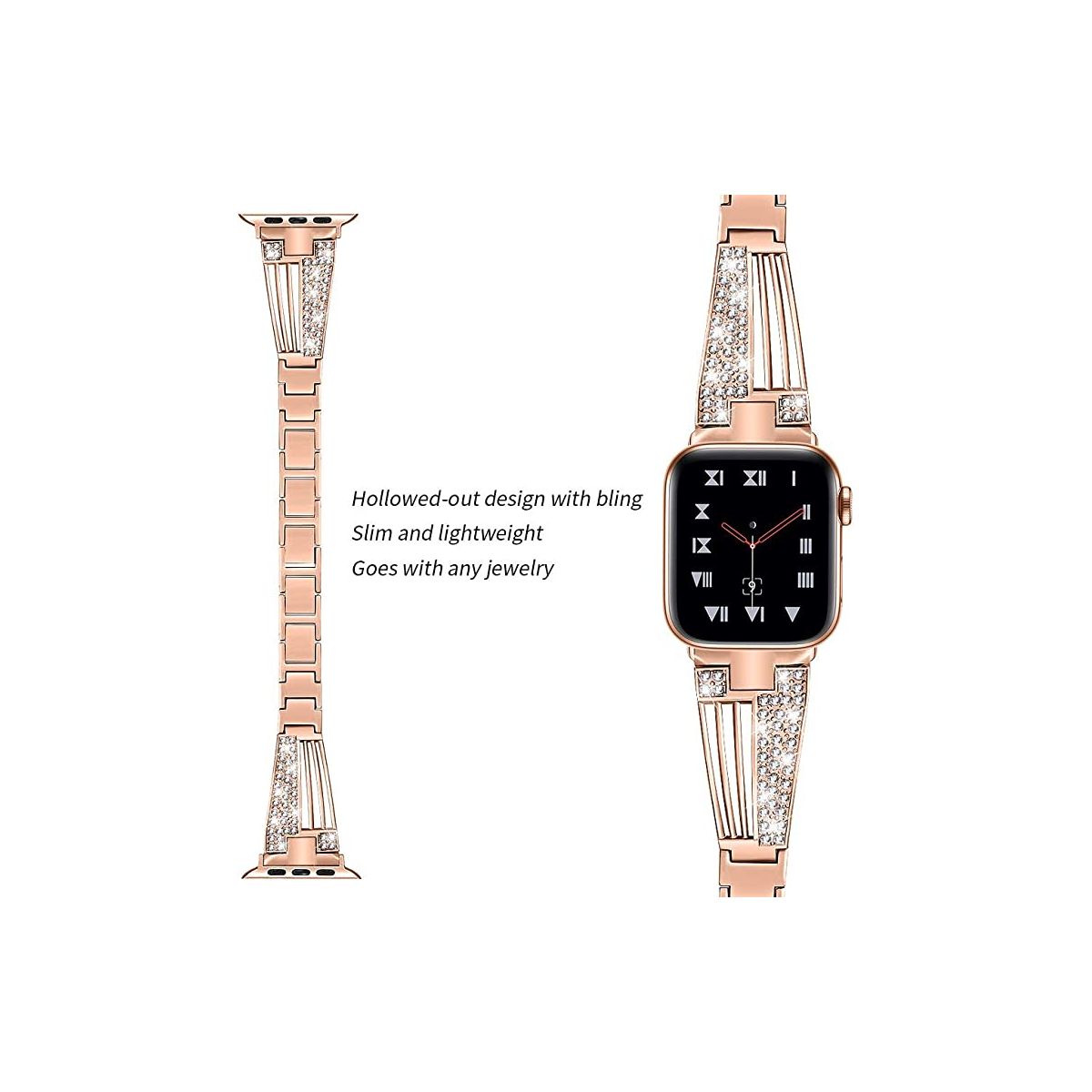 Worryfree Gadgets Apple Watch Band, Jewelry Metal Strap with Bling Diamond Rhinestone Bracelet for iWatch Bands Series 8 7 6 5 4 3 2 1 SE, Rose Gold
