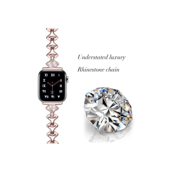 Worryfree Gadgets Apple Watch Band Metal Strap Diamond Rhinestone Women Bracelet Strap for iWatch Bands Series 8 7 6 5 4 3 2 1 SE - 38/40/41mm - Pink