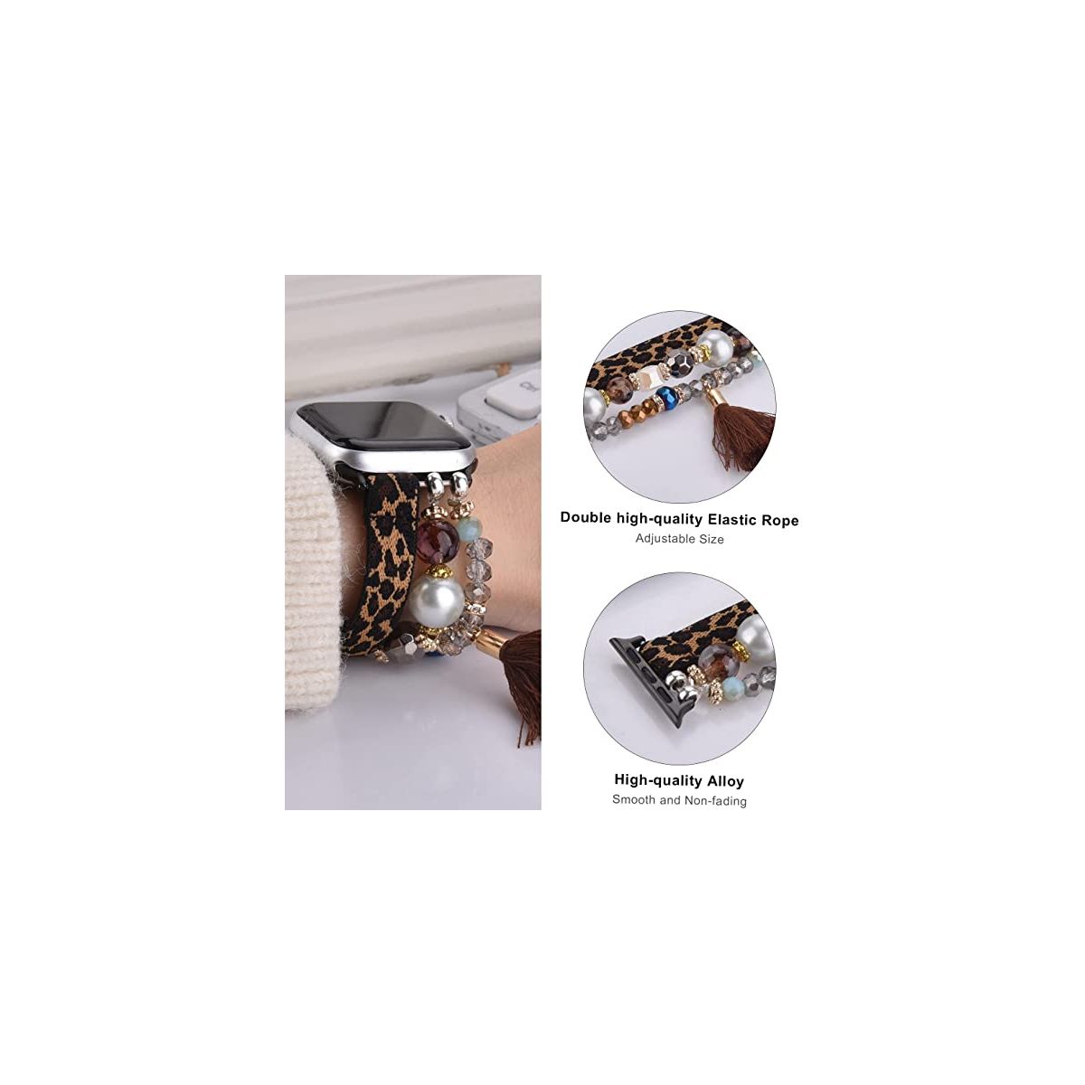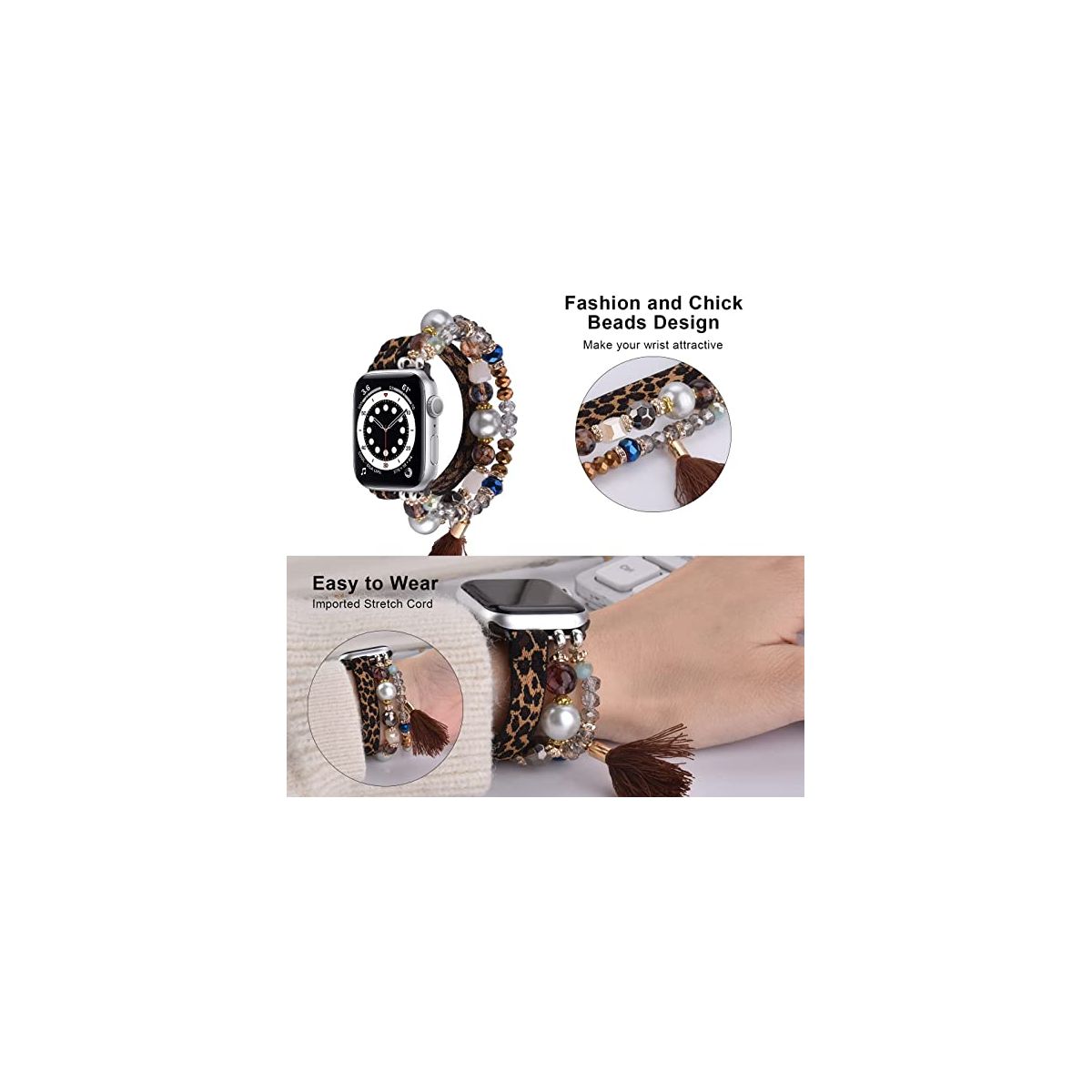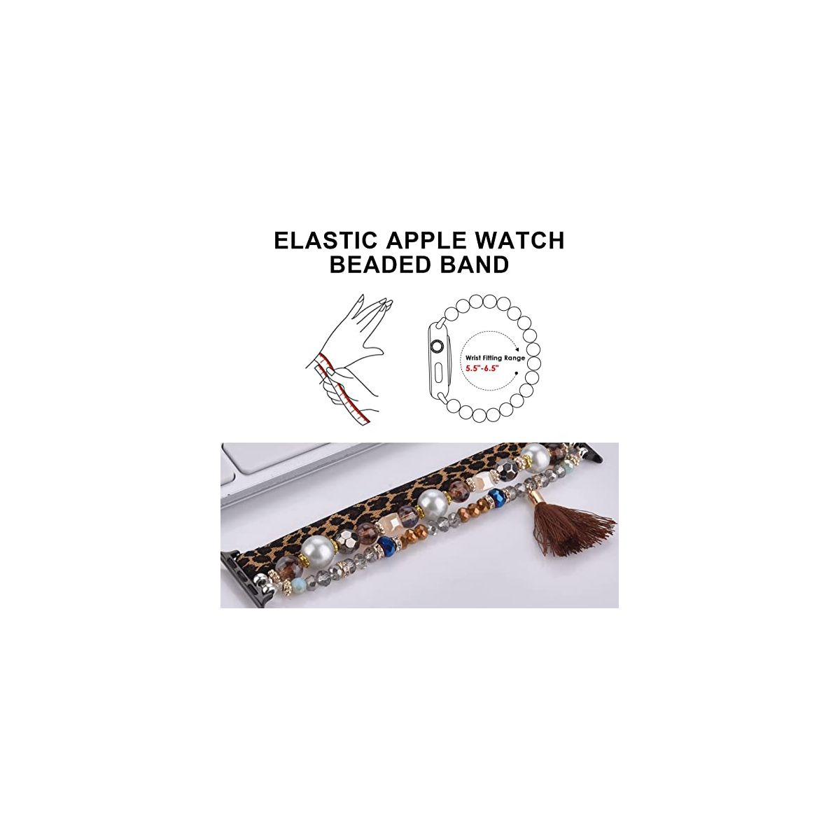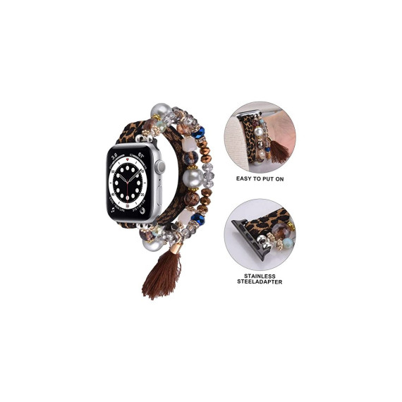 Worryfree Gadgets Beaded Handmade Fashion Bands for Apple Watch 38/40/41mm - Black
