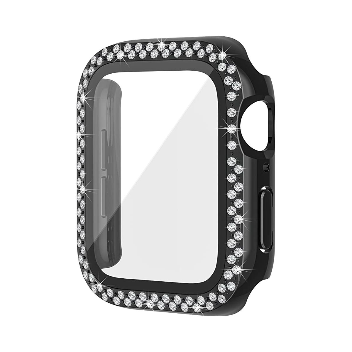 "Sparkling Bling Design: Double row dazzling crystal rhinestone diamonds are embedded in the Apple Watch Case, perfect for upgrading casual outfits or setting off luxurious evening wear.